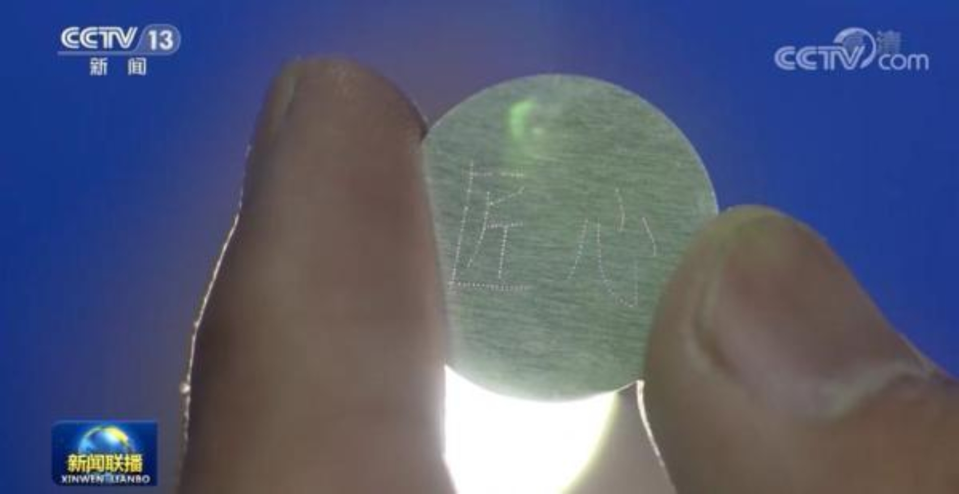 一塊硬幣大小的金屬板,高速旋轉的極細刀頭,一個多小時之后,182個直徑比頭發絲還細的小孔神奇的精確成型。只有通過強光,才能看到182個小孔所呈現出的內容。