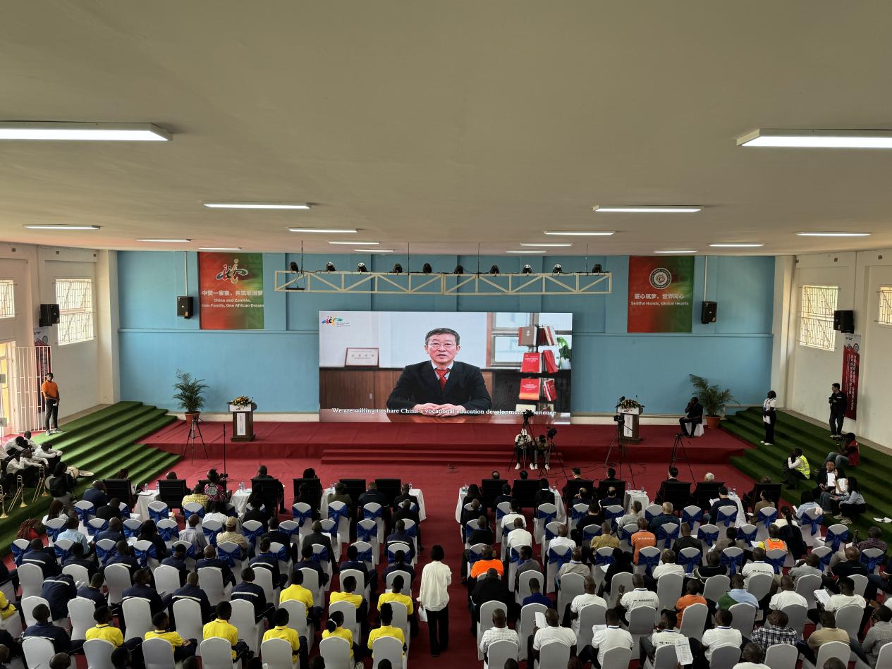 中國教育部職業(yè)教育與成人教育司副司長李智、贊比亞科技部部長Felix Mutati、中國有色礦業(yè)集團(tuán)中南部非洲區(qū)域總部總經(jīng)理王首高,有色金屬工業(yè)人才中心黨委書記謝承杰、中色盧安夏銅業(yè)有限公司董事長李占炎、北京工業(yè)職業(yè)技術(shù)學(xué)院組織部部長苗耀華、中國-贊比亞職業(yè)技術(shù)學(xué)院院長Yamvwa等通過線上線下相結(jié)合的方式出席開幕式并致辭。