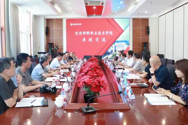 7月6日,邯鄲職業(yè)技術(shù)學(xué)院黨委書記楊華云,黨委委員、副院長(zhǎng)張長(zhǎng)聲等一行11人來我校調(diào)研交流。我校黨委副書記、院長(zhǎng)安江英,黨委常委、院長(zhǎng)助理謝光輝參加此次調(diào)研交流。