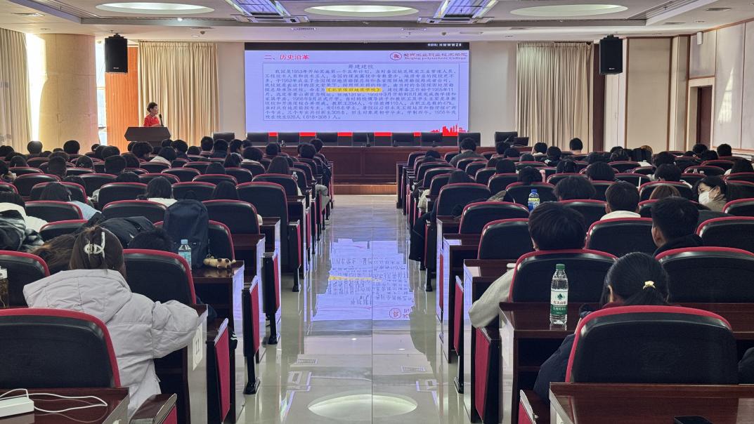 會上,陳劍平老師從學院歷史沿革、學院現(xiàn)狀、展望未來三個方面,闡述了學院68年來風雨兼程、薪火相傳的奮斗發(fā)展史。她詳細介紹了學院自創(chuàng)辦以來的各個發(fā)展階段,包括辦學理念、人才培養(yǎng)模式、科技創(chuàng)新成果等方面的變化與進步。分享了老一輩教師和杰出老校友的感人事跡,讓學生感受那份責任與擔當、奮斗與堅守、創(chuàng)新與奉獻,激勵同學們銳意進取,向榜樣學習。