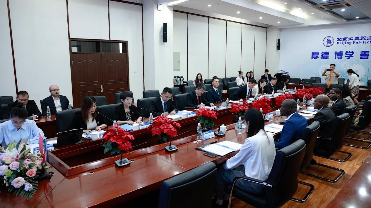 我校柳長安院長發(fā)表致辭。他指出,聯(lián)合聲明的簽署是兩國職業(yè)教育交流與合作深化發(fā)展的重要里程碑,也是中非教育攜手合作的又一碩果。柳院長表示,雙方將以此次簽約為契機(jī),進(jìn)一步深化合作內(nèi)容,拓寬合作領(lǐng)域,創(chuàng)新合作方式,共同構(gòu)建兩國全方位、多層次、寬領(lǐng)域的職業(yè)教育國際合作體系。進(jìn)而實(shí)現(xiàn)優(yōu)質(zhì)教育資源的共享與互補(bǔ),為兩國青年提供提升技術(shù)技能的平臺(tái),提供更多了解彼此、增進(jìn)友誼的機(jī)會(huì)。