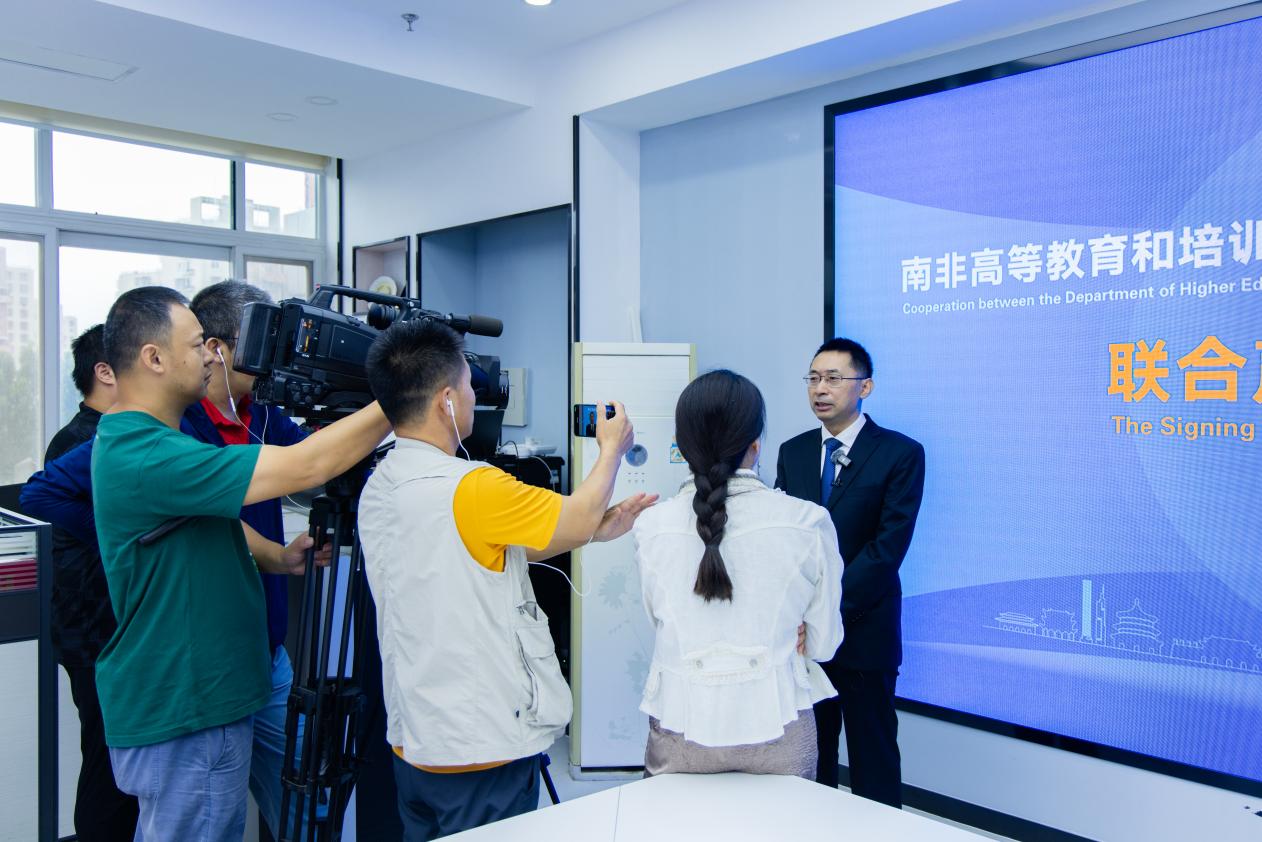 簽約儀式結(jié)束后,柳長安院長與南非高教部西西總司長共同接受了北京電視臺(tái)和中國教育電視臺(tái)等媒體的采訪,分別就此次中南雙方教育合作的未來著力點(diǎn)給與解答。