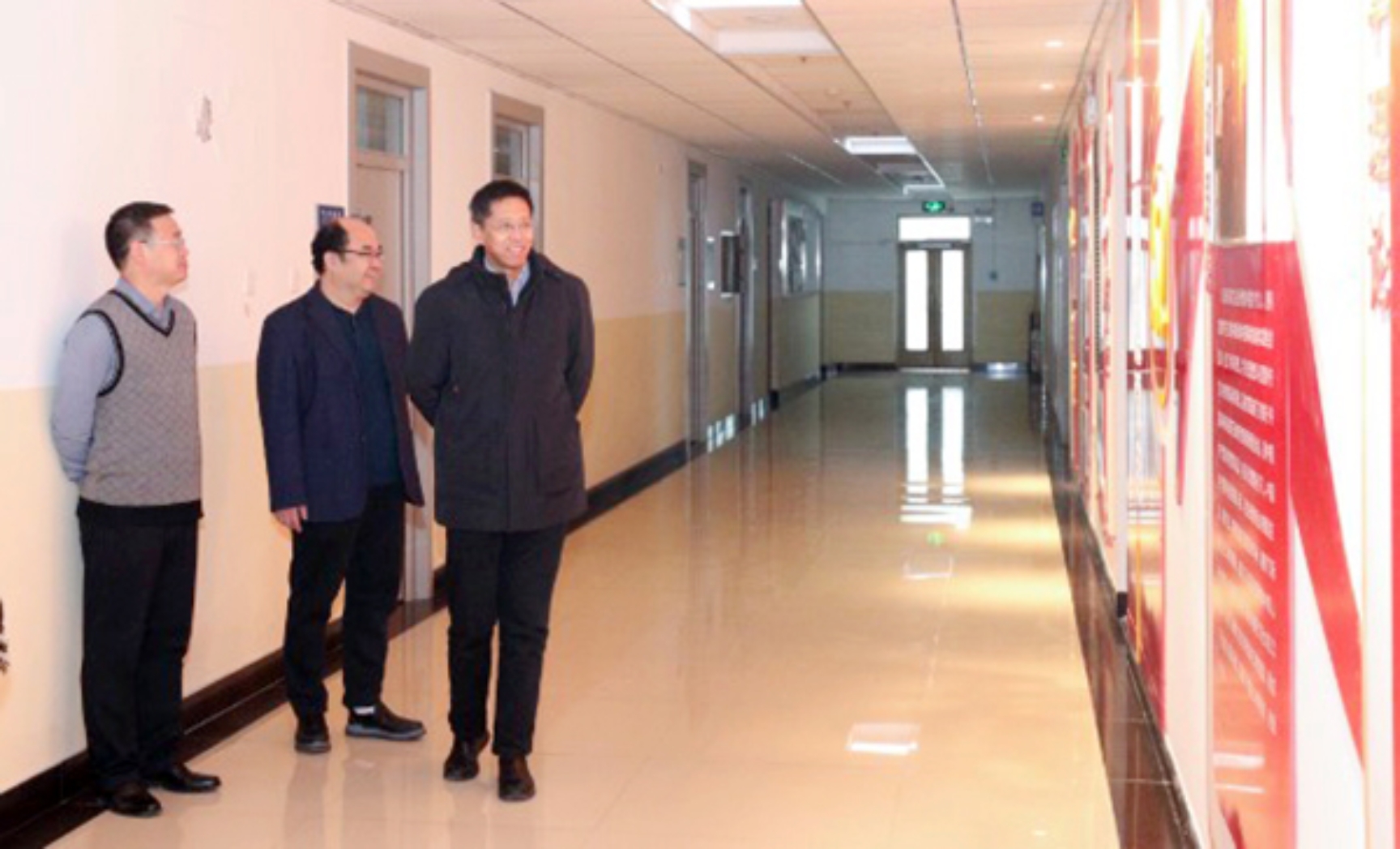 高喜軍書記一行首先參觀了馬克思主義學院思政文化墻,詳細了解文化墻的布局、內容和意義,并就文化墻建設等在現場做了交流,馬院院長張春勇匯報了有關情況。