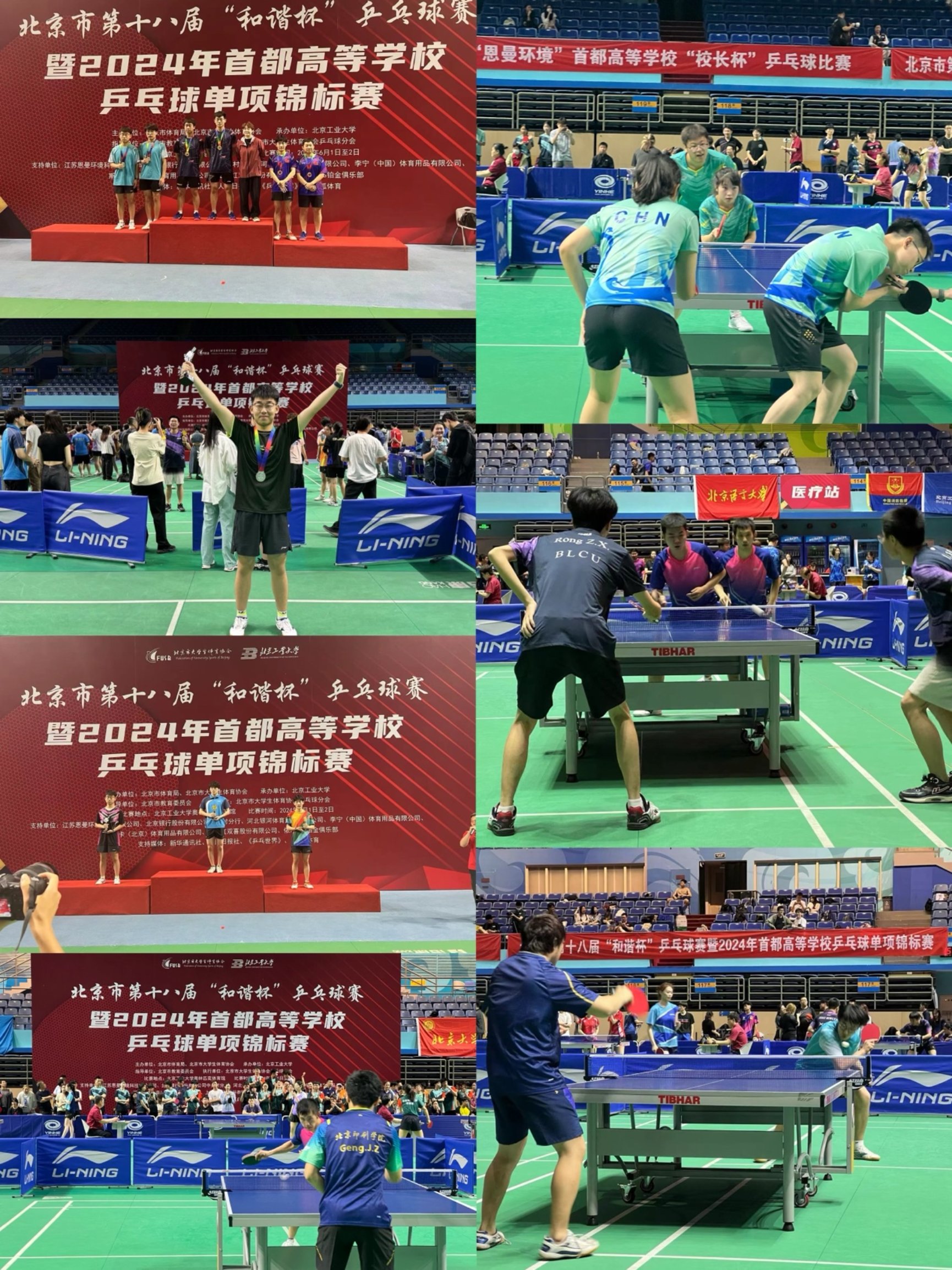 6月1-2日,北京市第18屆“和諧杯”乒乓球賽暨2024年首都高等學校乒乓球單項錦標賽在北京工業大學奧林匹克體育館舉行。比賽由北京體育局、北京大學生體協主辦主辦,共有首都58所院校、580名男女運動員參賽。經過逐輪拼搏,我校獲得男子雙打亞軍和男子單打亞軍。