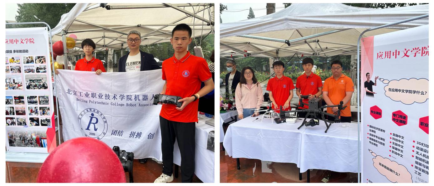 我校機電學院教師王俊,建工學院教師劉彥君分別帶領智能機器人團隊和無人機測繪團隊參加了文化節的展示,期間吸引了大量留學生、觀眾駐足圍觀,不少留學生表示希望報名“中文+職業技能”項目,到北工院學習職業技術。