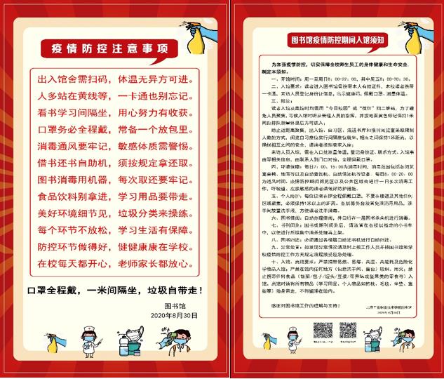 圖書館嚴格按照安全管控、動態管控、科學使用的要求,各項服務工作滿足秋季開學需求,保障我院師生學習工作需要,做好校園常態化疫情防控。