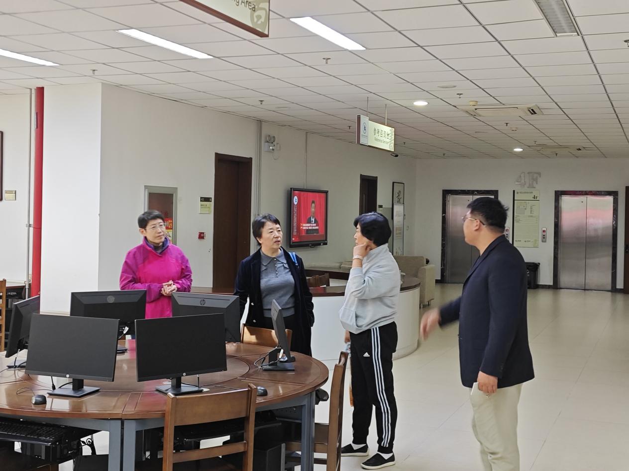 10月23日,校黨委書記田紅芳、副院長周燕到圖書館調研,聽取圖書館負責人的工作匯報,實地走訪了閱覽室、書庫、辦公場所,了解館藏資源及利用情況、館舍功能布局、樓宇消防安全及管理等。