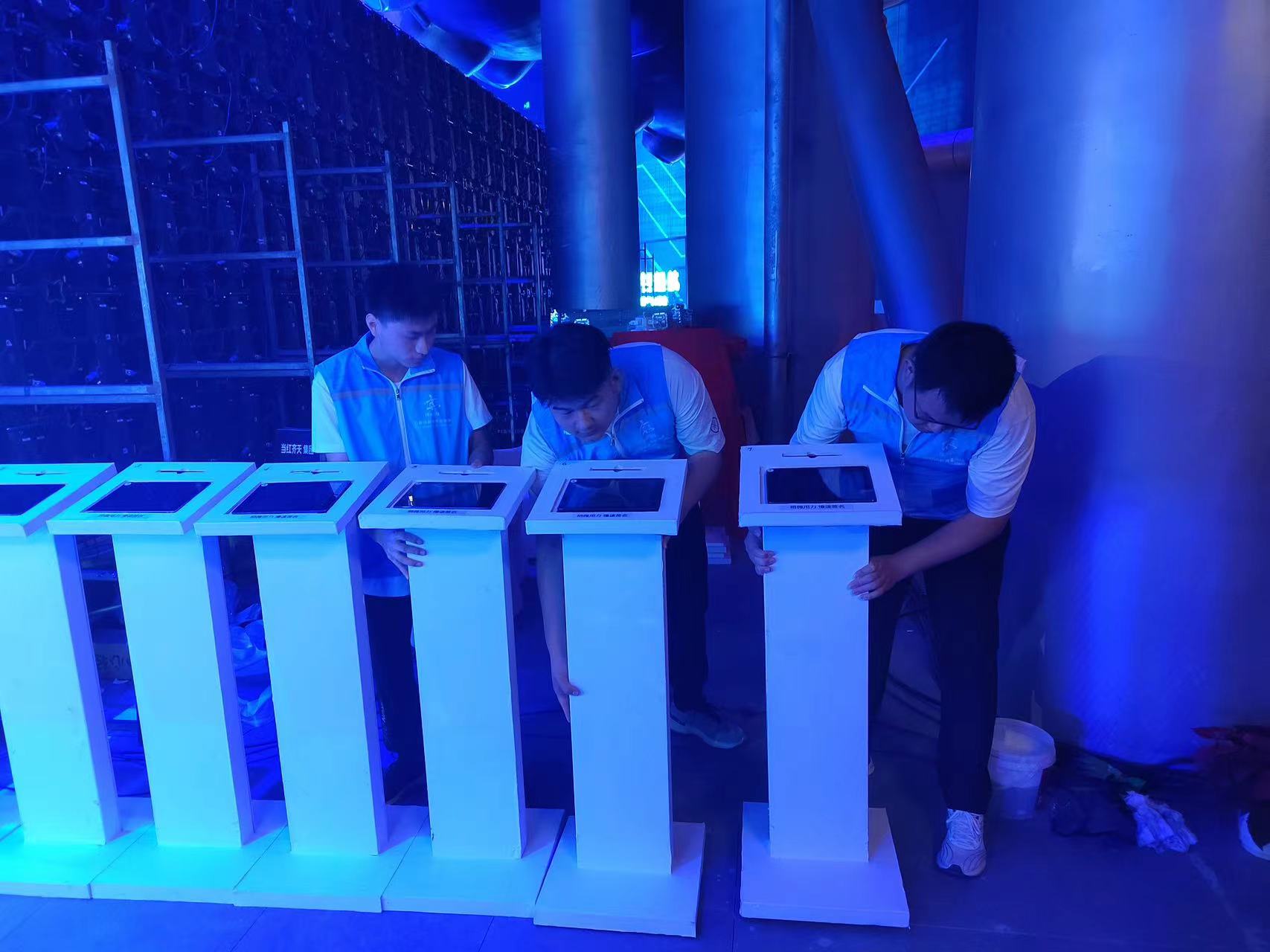 在舞臺兩側,志愿者們協助工作人員,為后臺備物資、看守設備,擺放道具。