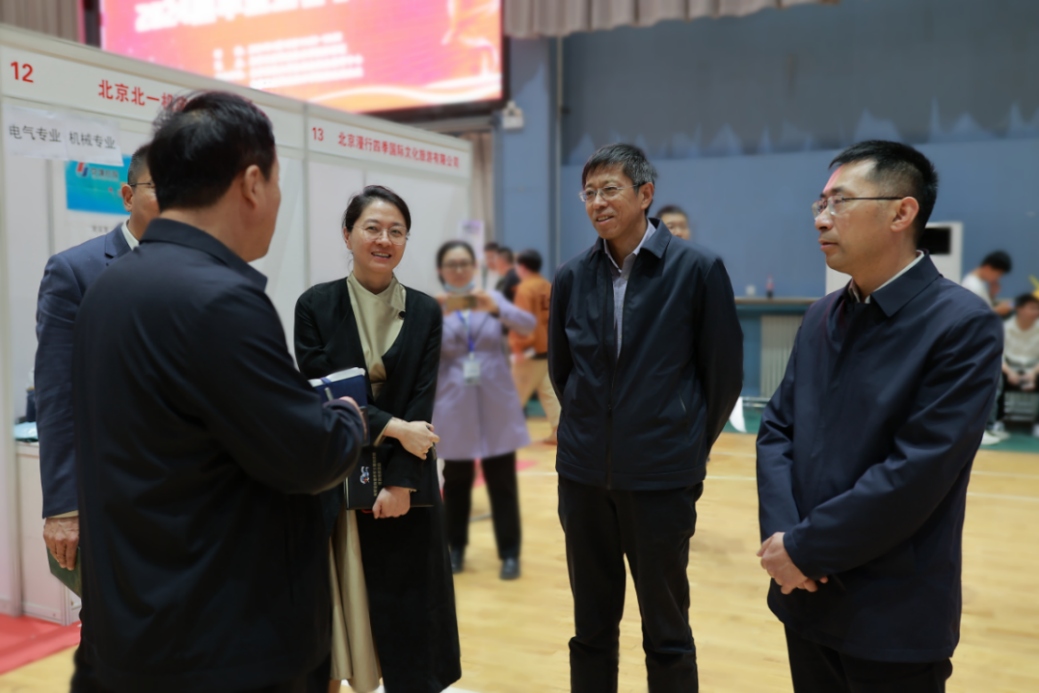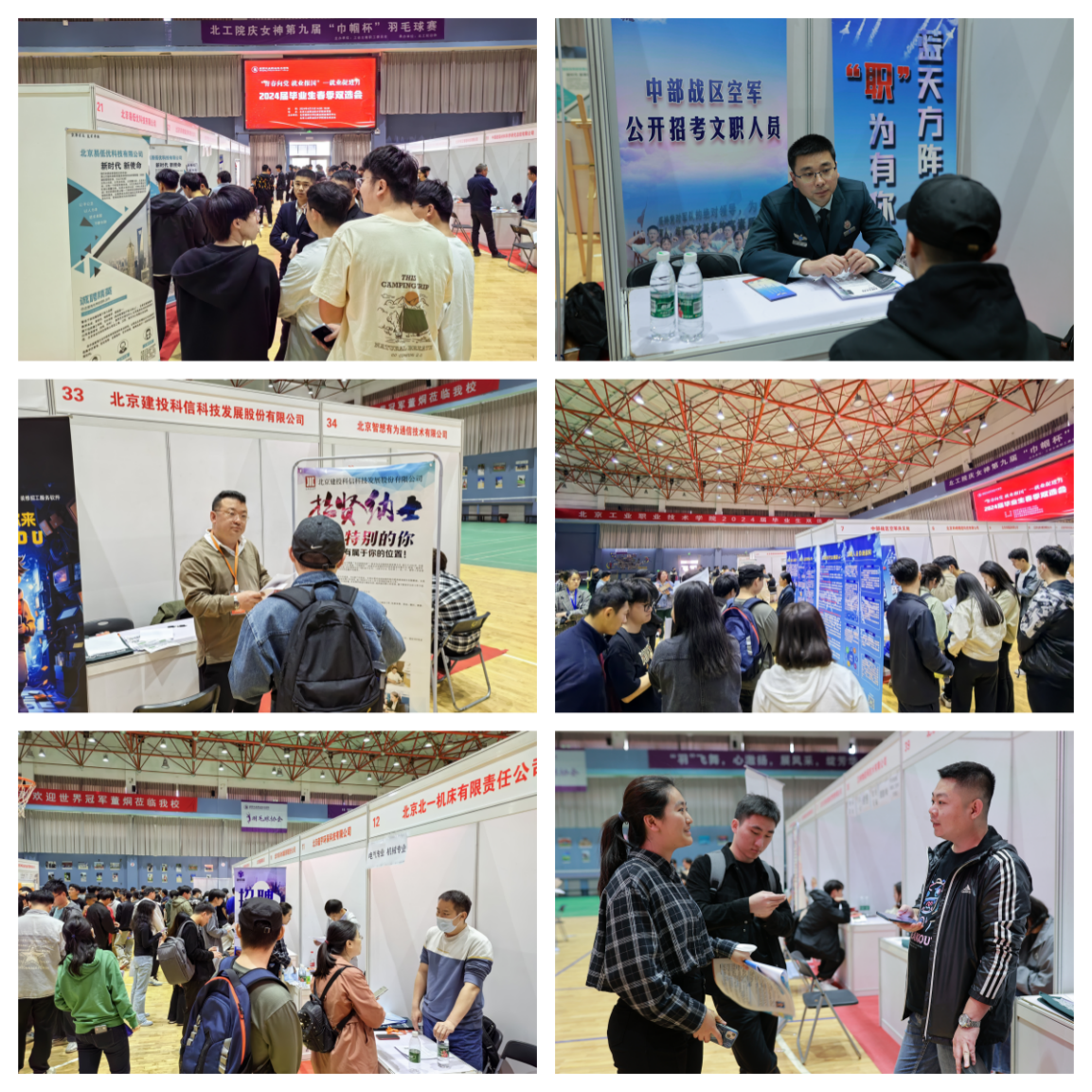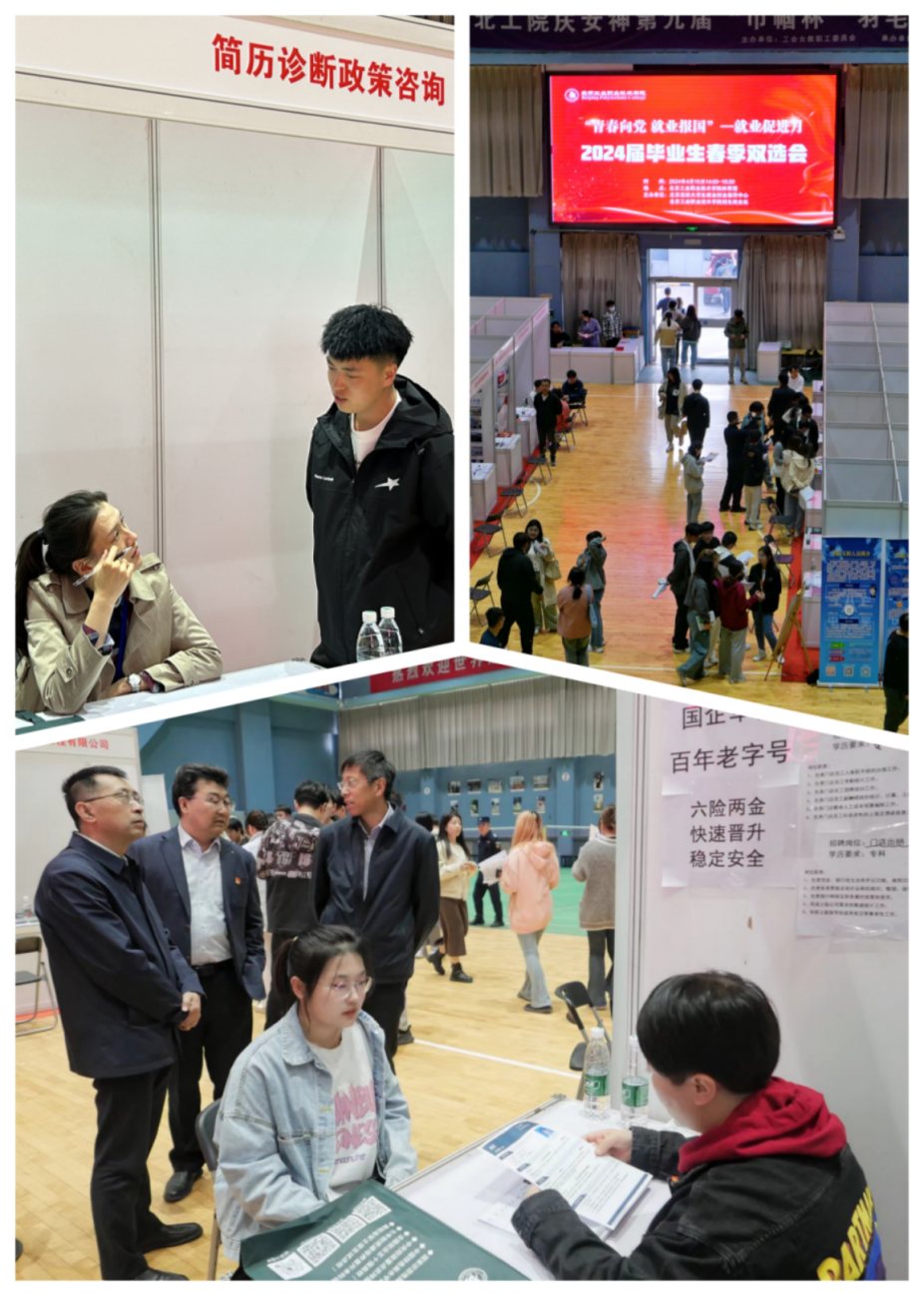 根據北京市教委《關于開展“青春向黨,就業報國—春季就業服務季”活動的通知》和北京工業職業技術學院《2024年畢業生就業促進工作方案》的要求,為了更好地滿足用人單位的人才需求,促進畢業生充分、高質量就業,4月15日下午,北京工業職業技術學院2024屆畢業生春季雙選會在我校體育館內舉行,共吸引各行業50余家用人單位,1000余名學生參加本次雙選會。此次雙選會得到了校領導的高度重視,黨委書記高喜軍,黨委副書記、院長柳長安,黨委常委、副院長沈瑩,黨委常委、副院長高世吉,黨委常委、紀委書記錢偉等校領導和各二級學院負責人都親臨現場與企業進行交流。