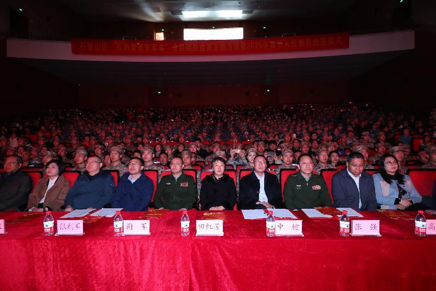 中國人民解放軍 31592 部隊大校政委謝軍,石景山區區委副書記張利軍,區委常委、宣傳部部長申鍵,副區長鐘棉棉,北京工業職業技術學院黨委書記田紅芳等領導及600余高校師生、全國國防教育示范校少先隊員代表、新兵親友共同見證這一莊嚴時刻。