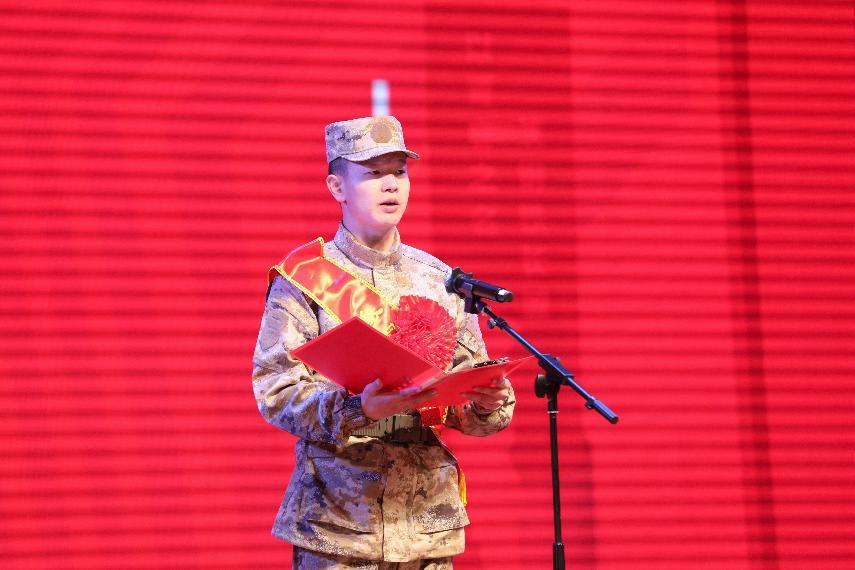 我校電氣2231班姚蕊作為新兵代表上臺表決心,“一定服從命令、聽從指揮,奮力拼搏、敢于吃苦,以實際行動踐行錚錚誓言,為家鄉爭光添彩”,表達了全體新兵對祖國、家鄉和親人的錚錚誓言。