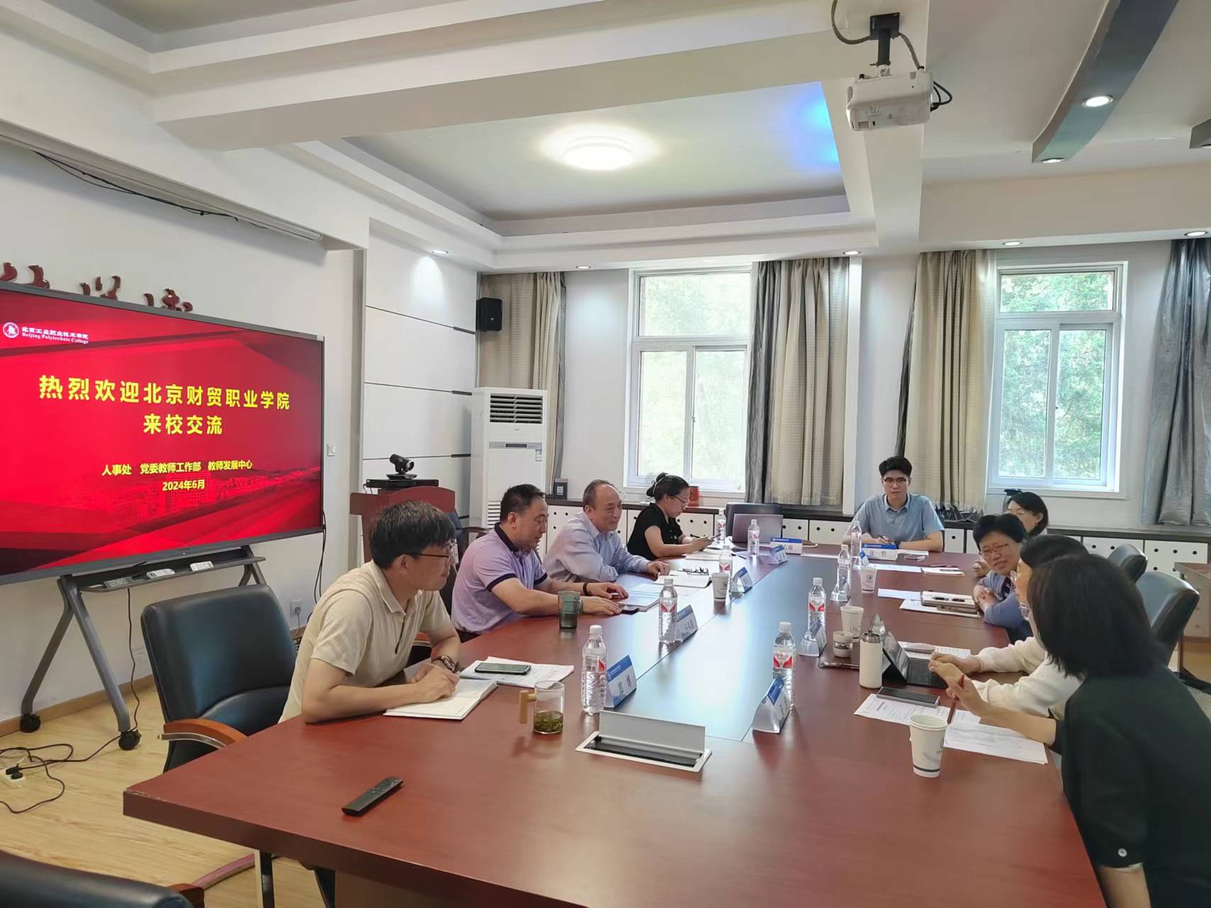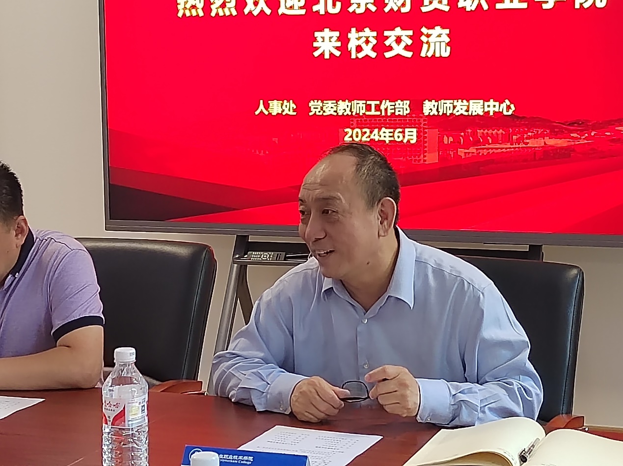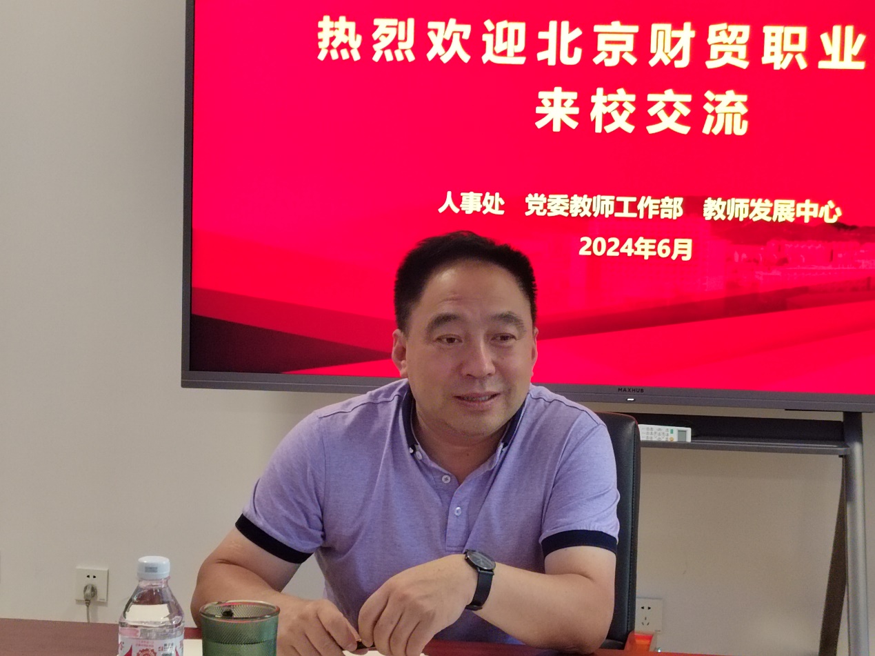 6月18日,北京財貿職業學院黨委副書記高峰,人事處處長袁蕊,人事處副處長張佳等一行5人來校調研交流。學校黨委副書記魏曉東,人事處處長任鳳國,人事處副處長侯瑾、郎博以及相關工作人員參加調研。