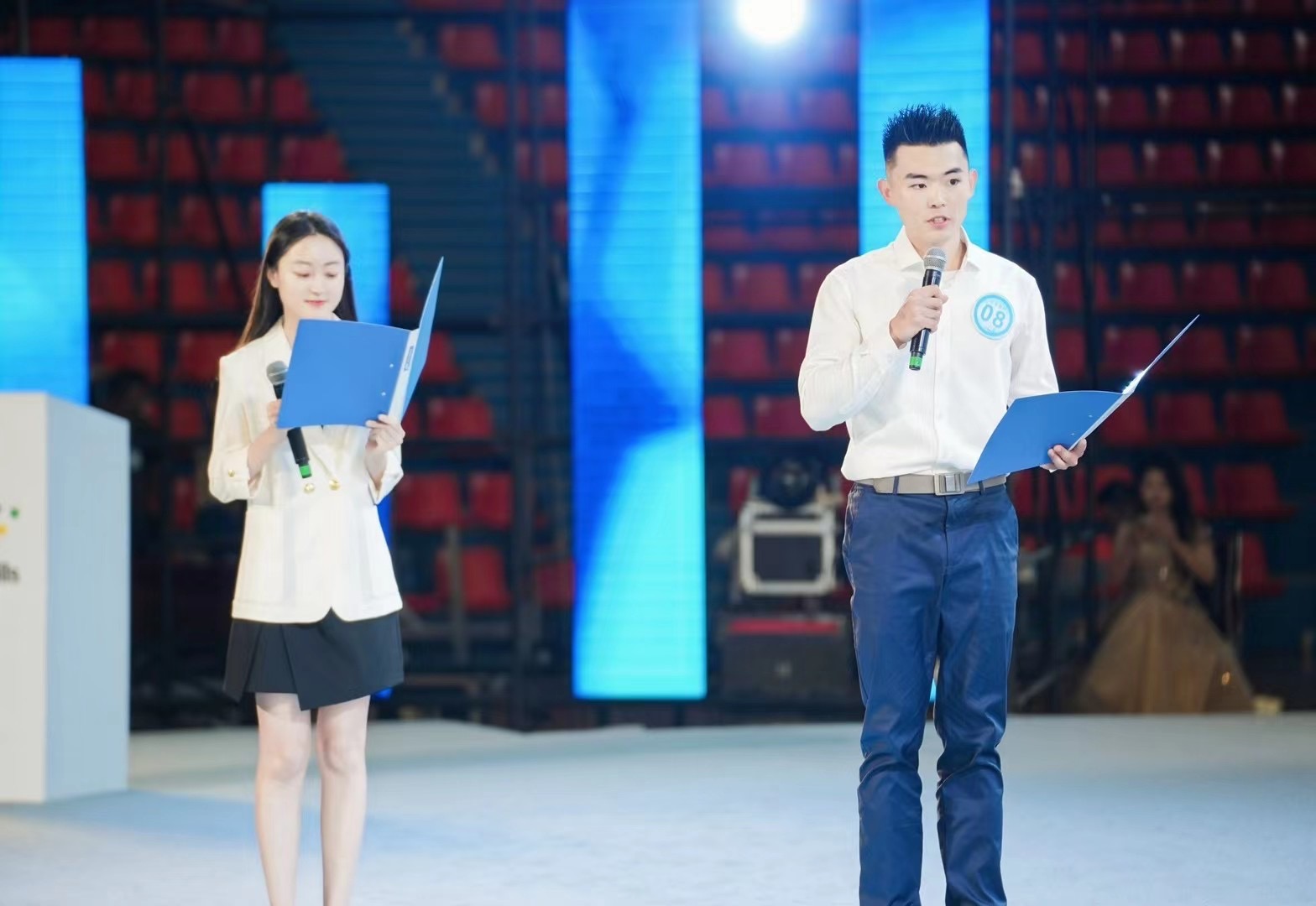 比賽包括“中國故事”“情景交流”“職場描述”和“職場辯論”四個環節,由往年的學生參賽改為師生同賽,各院校師生同臺競技。通過“師生同賽”的形式創新競賽方式,師生結為競賽共同體,一同備賽,同臺參賽。于天嬌、侯明軒師生二人組成的參賽隊披荊斬棘、過關斬將,在競技中展示英語語言綜合運用能力與職業風采,充分體現了我校英語教學“學以致用,學用結合”的理念,進一步展示了我校國際化辦學的特色和積淀。