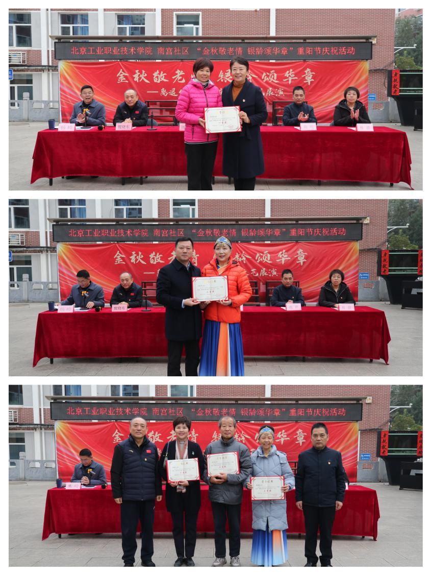 隨后開展的慶重陽文藝展演精彩紛呈。由南宮社區與學校離退休舞蹈隊聯袂演繹藏族舞《吉祥四季》,拉開展演序幕;青年教師朗誦《師者如炬,育夢成光》深情詮釋育人使命;武術《太極刀》展現剛柔并濟的傳統魅力;男聲小合唱《夕陽紅》唱出歲月沉淀的從容;葫蘆絲演奏《有一個美麗的地方》傳遞悠揚意境;手語歌《攙扶》以無聲語言詮釋關愛;南宮社區女聲合唱團帶來《年輕的朋友來相會》,煥發青春活力;學生朗誦《薪火代代傳 匠心耀青春》彰顯傳承力量;北工院銀齡之聲合唱團以《老師我想你》收尾,深情表達師者情懷將現場氣氛推向高潮,整場演出在溫馨感動中圓滿落幕。