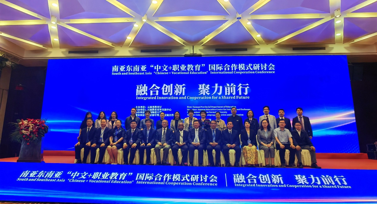 此次研討會由云南省教育廳主辦,云南教育對外交流中心承辦,云南師范大學協辦。會議聚焦在新形勢下云南省如何搭建面向南亞東南亞建設教育輻射中心,以推動“中文+職業教育”高質量發展。教育部中外語言交流合作中心(以下簡稱“語合中心”)、南亞東南亞駐華使領館官員、云南省外辦、云南省教育廳、云南省人社廳、云南省商務廳等廳局、全國“中文+職業技能”教育領域專家學者、優秀實操成果的院校和企業、南亞東南亞國家“中文+職業教育”領域相關院校和企業等共百余家單位200多人參會。