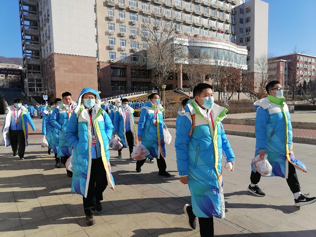 早上9時(shí)30分,99名冬奧城市志愿者點(diǎn)位員集結(jié)在匠心樓三層報(bào)告廳進(jìn)行活動(dòng)前最后一次培訓(xùn)。隨著一聲令下,大家列隊(duì)整齊,昂首闊步,正式出發(fā)。