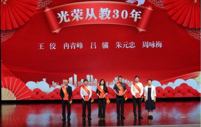 田紅芳向從教30年教職工頒發榮譽證書。從教30年教師朱元忠作為代表發言,感恩學校給予的平臺與信任,表示將繼續堅守育人初心,與北工院所有同仁一道,為培養更多棟梁之材貢獻力量。
