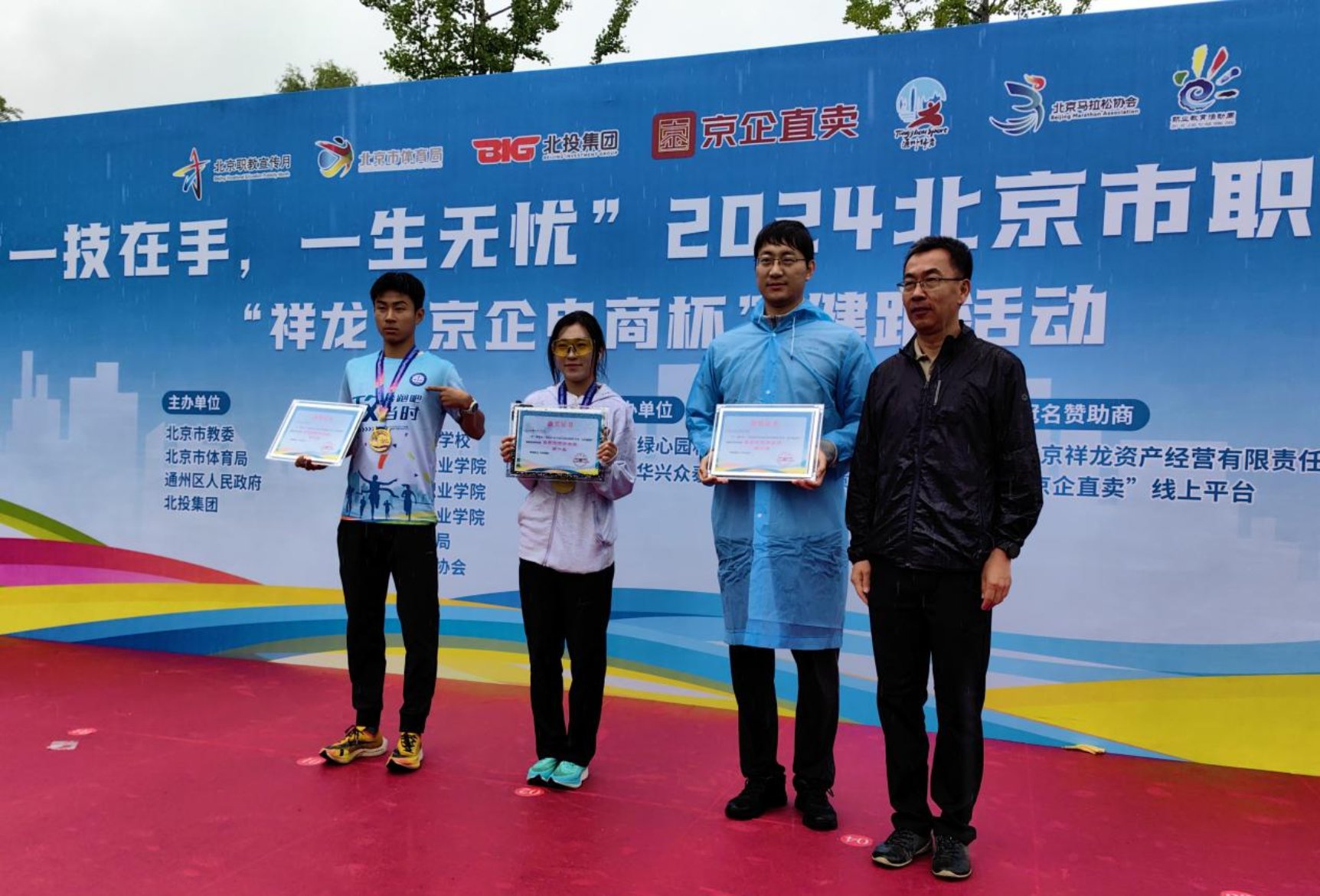 本次健跑活動設置中職學生組、高職學生組和教職工組三個組別。我校學子以飽滿的精神、昂揚的斗志,充分展現出未來工匠的蓬勃朝氣和青春風采,最終獲得高職學生組第一名的好成績,北京電子科技職業學院、北京政法職業學院分獲第二和第三名。