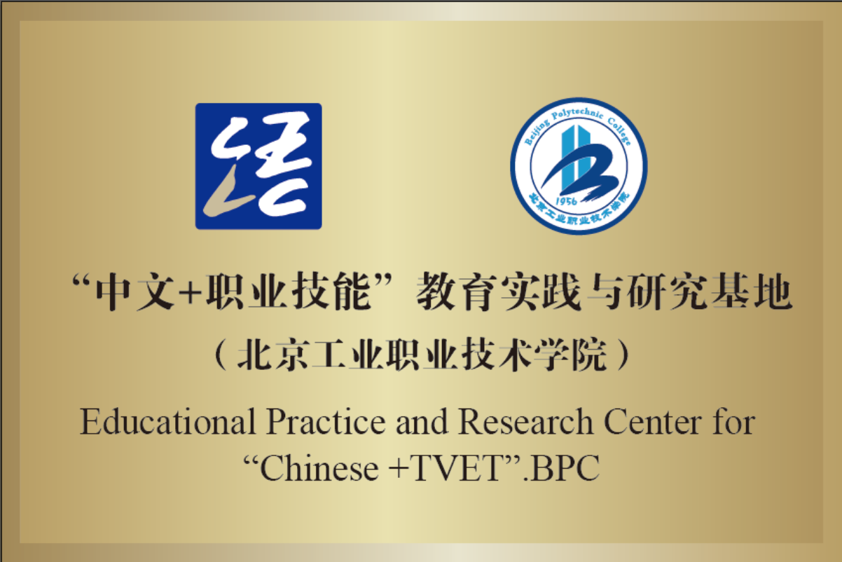 (北京工業職業技術學院“中文+職業技能”教育實踐與研究基地牌匾)