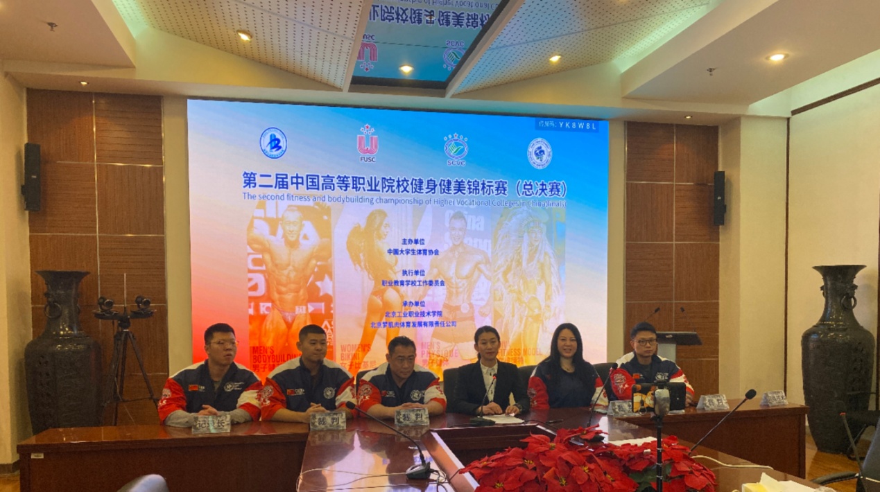 12月12日,總決賽以現(xiàn)場(chǎng)直播的方式在我校第四會(huì)議室進(jìn)行,中國(guó)大學(xué)生體育協(xié)會(huì)綜合部主任張漢、中國(guó)大學(xué)生體育協(xié)會(huì)職業(yè)教育學(xué)校體育工作委員會(huì)秘書長(zhǎng)賈書申、北京夢(mèng)肌肉體育發(fā)展有限責(zé)任公司總經(jīng)理王萱、以及健身健美全國(guó)冠軍、國(guó)際級(jí)裁判員們出席開幕式。賈書申秘書長(zhǎng)為比賽致辭,張漢主任宣布比賽開幕,開幕式由副秘書長(zhǎng)韋春生主持。