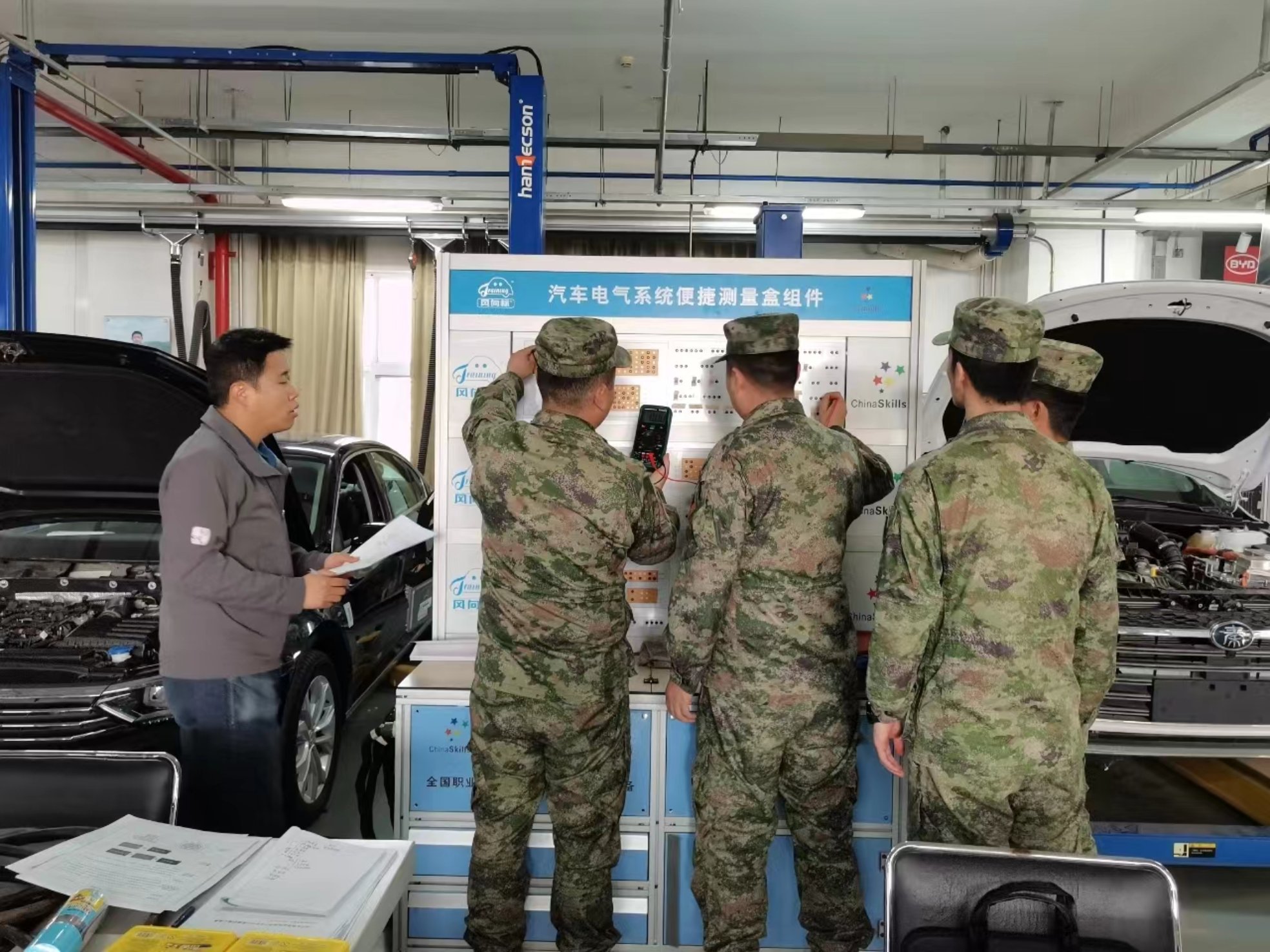 自2011年開始,北京工業職業技術學院按照“入伍即入學,在伍有作為,退伍即成才”的標準,持續主導推動“強軍育才”接力工程。學校牽頭組建“軍政校企”四方培訓聯合體,充分調動各方積極性,發揮各自優勢、專長,為官兵提供更為豐富的培訓資源,設立“強軍育才”專項資金予以配套支持,教學、實踐資源全部對官兵開放。組建了以校內專職教師為主、校企合作企業兼職教師為輔,包含專家教授、行業技能大師、全國大賽冠軍為主的金牌培訓團隊。把握需求,精準設計軍地兩用項目,課證融通,服務官兵職業生涯發展。通過“強軍育才”接力工程累計培訓現役官兵7900余人,提供各式服務活動150余場,為新時期強軍建設作出突出貢獻。為石景山區連續8年“雙擁模范城”做出突出貢獻,是首都借助職教資源優勢,引導社會力量擁軍、推進軍民融合發展的先行探索。