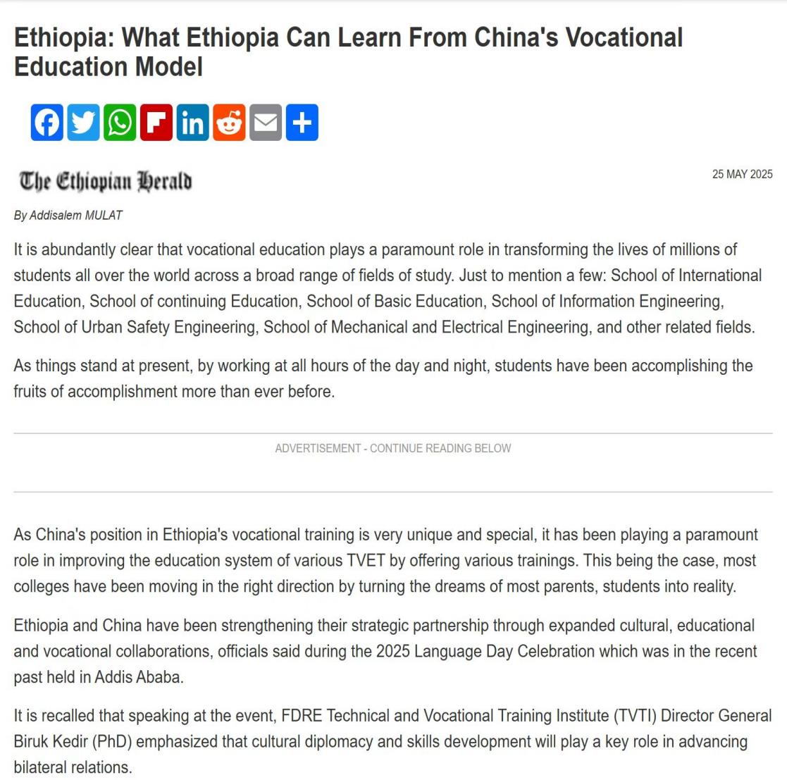 埃塞俄比亞記者阿迪薩利姆·穆拉特、盧旺達時間網(wǎng)記者克里斯汀、岡比亞國家廣播電視臺記者Kadijah等多家外國媒體記者對此次活動進行了專題報道。文中不僅生動記錄了在我校的參訪見聞,高度評價我校培養(yǎng)高素質(zhì)技術(shù)技能人才的顯著成效,更將中國職教經(jīng)驗提煉為推動非洲國家發(fā)展的重要參考。
