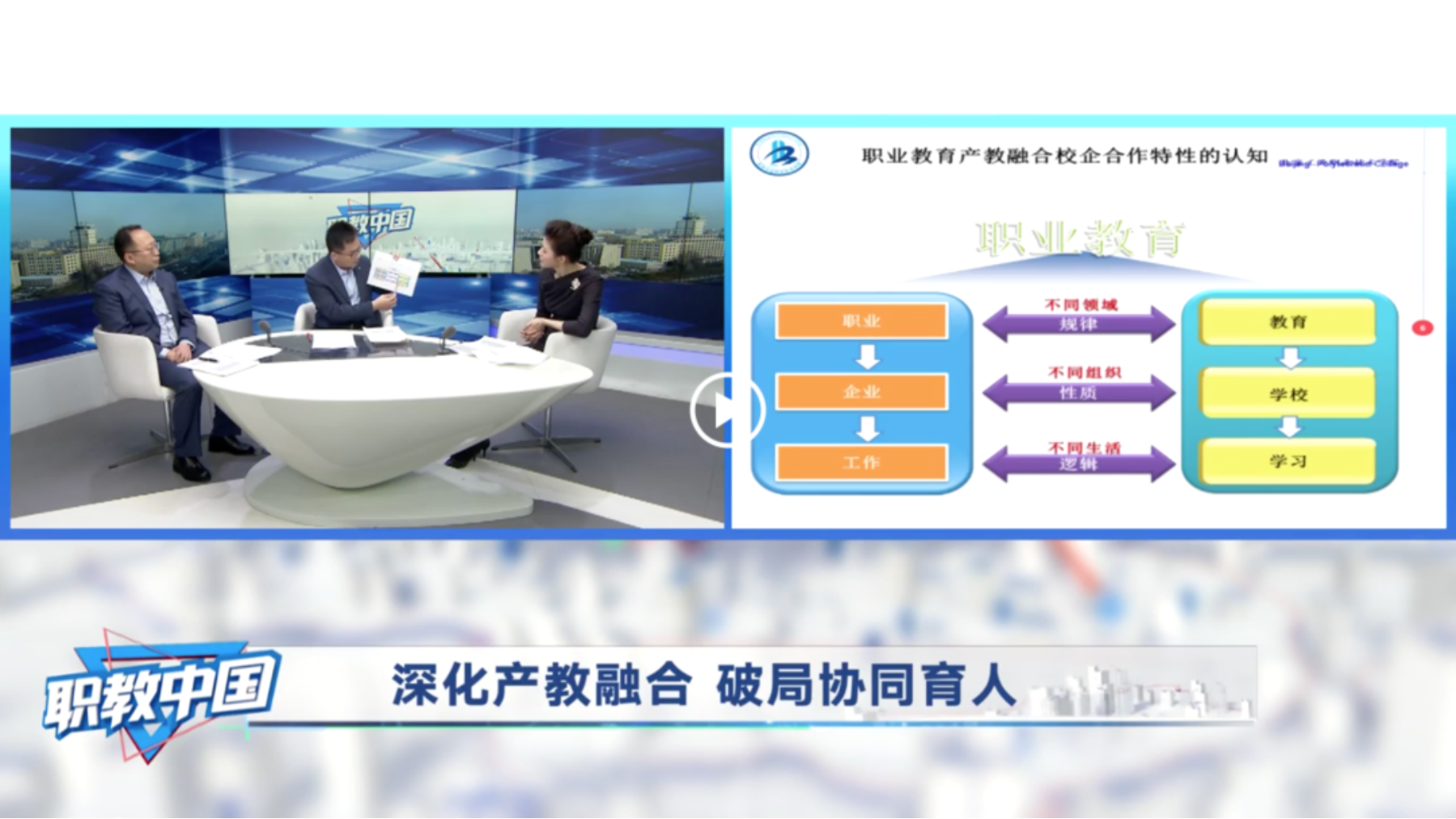 1月30日,中國教育電視臺《職教中國》欄目播出《深化產教融合 破局協同育人》。我校劉蘭明副校長和天津大學教育學院副院長潘海生一起,就我國職業教育進入高質量發展階段,產教融合有哪些新模式,哪個主體在辦學中扮演更重要的角色,職業院校怎樣吸引企業參與合作辦學等問題展開深入探討。