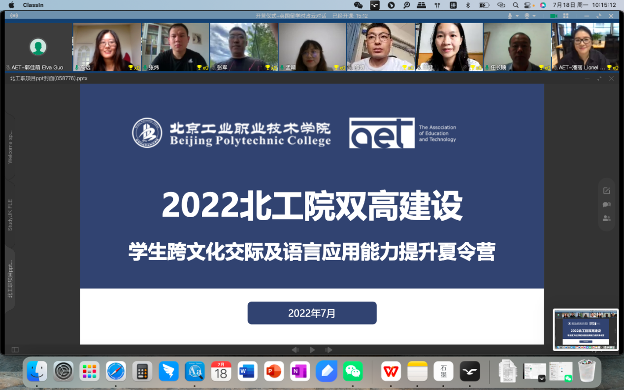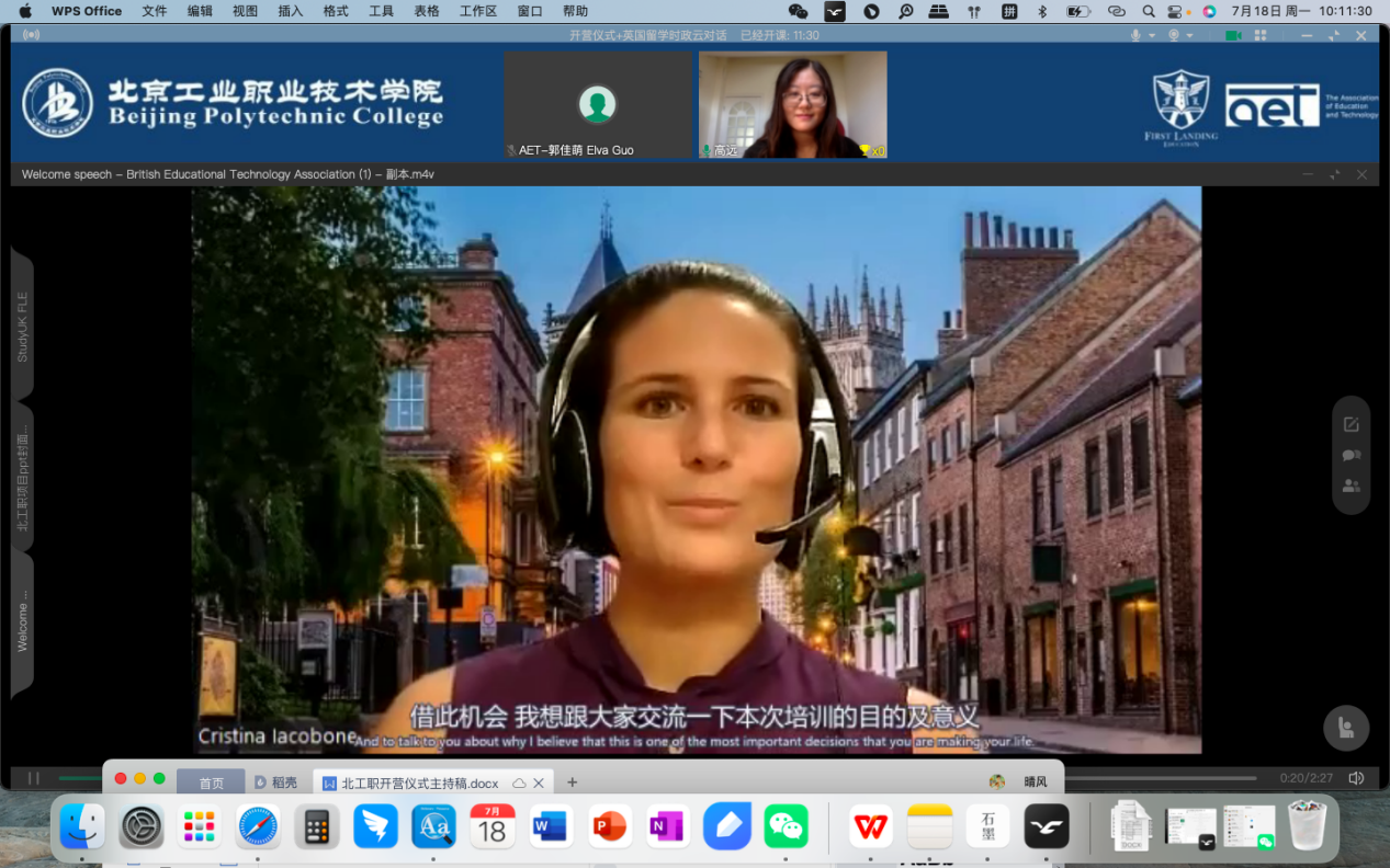 2022年7月18日上午10點,北工院雙高建設-學生跨文化交際及語言應用能力提升夏令營于線上順利開營。本次夏令營為期10天,來自機電工程學院、建筑與測繪工程學院、信息工程學院、文法與管理學院以及基礎教育學院5個學院50名優秀學生共同參加了此次夏令營。開營儀式由我校國際處高遠老師主持,英國教育科技協會夏令營項目學術負責人Cristina Iacobone女士、我校國際處副處長孟晴、機電工程學院副書記蘭健,建筑與測繪工程學院副書記任長順,信息工程學院副書記郎博,文法與管理學院副書記張軍,基礎教育學院副書記張煒,以及英國教育科技協會國際事務聯絡總監潘麗等領導共同出席了本次夏令營開營儀式。