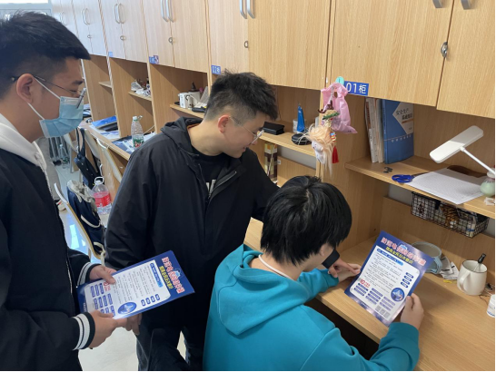 機電工程學院全體班主任、輔導員深入學生宿舍,在各宿舍發放、張貼由石景山公安分局印制的反詐宣傳單,同時再次引導學生下載、注冊并使用“全民反詐” APP,講解校園多發易發電信網絡詐騙案例,提醒同學們收到涉及錢財的可疑信息時要提高警惕。