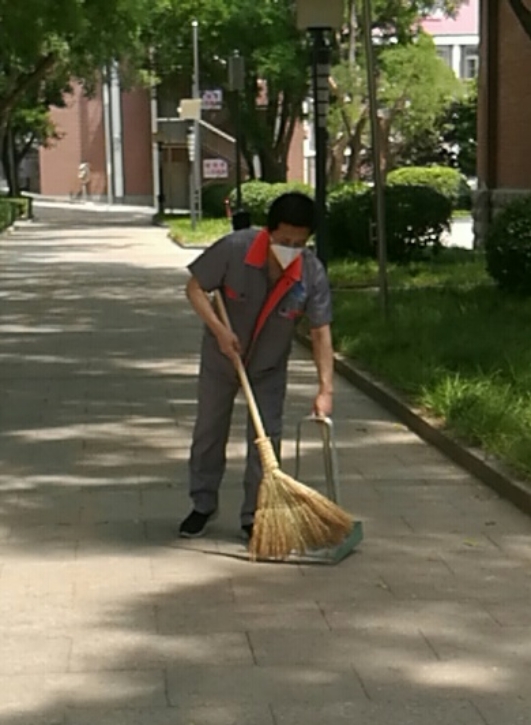因?yàn)橐咔槎裢饫淝宓男@里,總有幾個(gè)頻繁往來(lái)于各處勞作的身影,他們是校園管理中心的室外環(huán)衛(wèi)合同工們。防疫期間,學(xué)校共有5名環(huán)衛(wèi)員工堅(jiān)守一線(xiàn)崗位,清運(yùn)垃圾、打掃主路、遞送消毒物資、對(duì)校園的外環(huán)境進(jìn)行保潔。室外的每一個(gè)垃圾桶的清理、每一條道路的清潔都離不了室外環(huán)衛(wèi)合同工們加班加點(diǎn)的辛苦勞作。