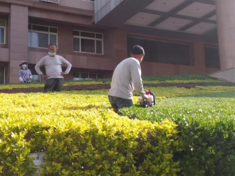 “春季不養(yǎng)護(hù)、秋季徒傷悲”,園林苗木養(yǎng)護(hù)任何時(shí)候都是不可缺少的。但是對(duì)于四季之首春季來(lái)說(shuō),園林苗木養(yǎng)護(hù)就顯得更加重要了。校園管理中心綠化隊(duì)在嚴(yán)控入校人員的規(guī)定下,通過(guò)加長(zhǎng)工作時(shí)間,合理分配勞動(dòng)順序的方式,在疫情封校期間嚴(yán)把養(yǎng)護(hù)質(zhì)量關(guān),切實(shí)把綠化二級(jí)養(yǎng)護(hù)標(biāo)準(zhǔn)落在實(shí)處。學(xué)校的綠化隊(duì)伍年齡結(jié)構(gòu)偏大,但都是有多年從業(yè)經(jīng)驗(yàn)的綠化人員,他們每日頂著30余度的酷暑,為抗疫形勢(shì)下的校園綠化工作揮灑著汗水。