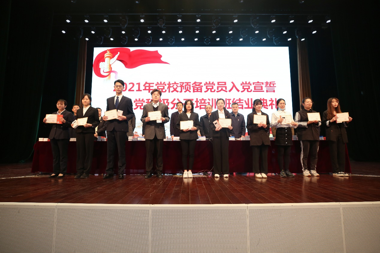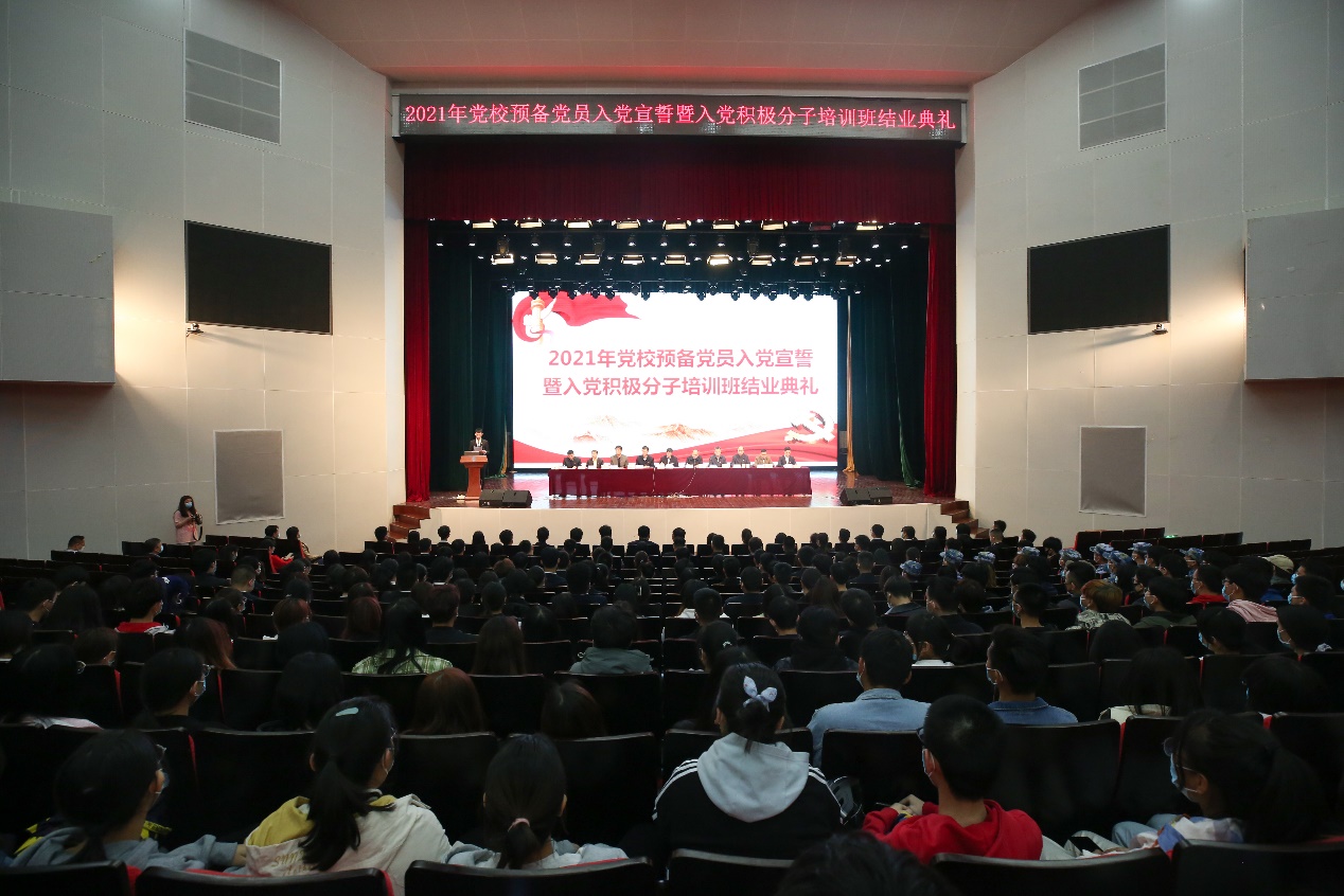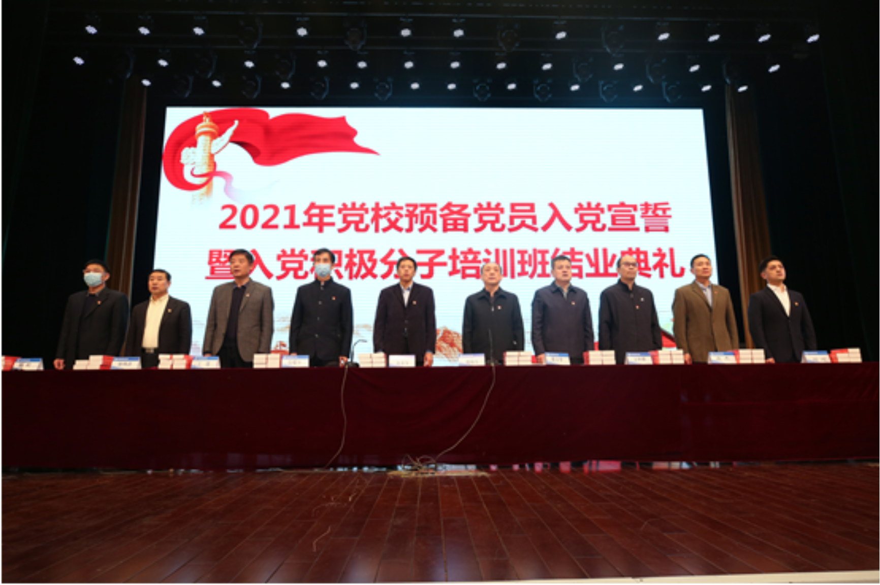 2021年4月9日中午,我校在禮堂舉辦2021年黨校預備黨員入黨宣誓暨入黨積極分子培訓班結業典禮。黨委書記、黨校校長高喜軍、黨委副書記、黨校副校長魏曉東、組織部部長苗耀華、學工處處長梁文學、團委書記鄭興、各二級學院黨總支書記、學生黨支部書記以及57名預備黨員、551名院校兩級入黨積極分子培訓班的合格學員參加了典禮。會議由魏曉東副書記主持。