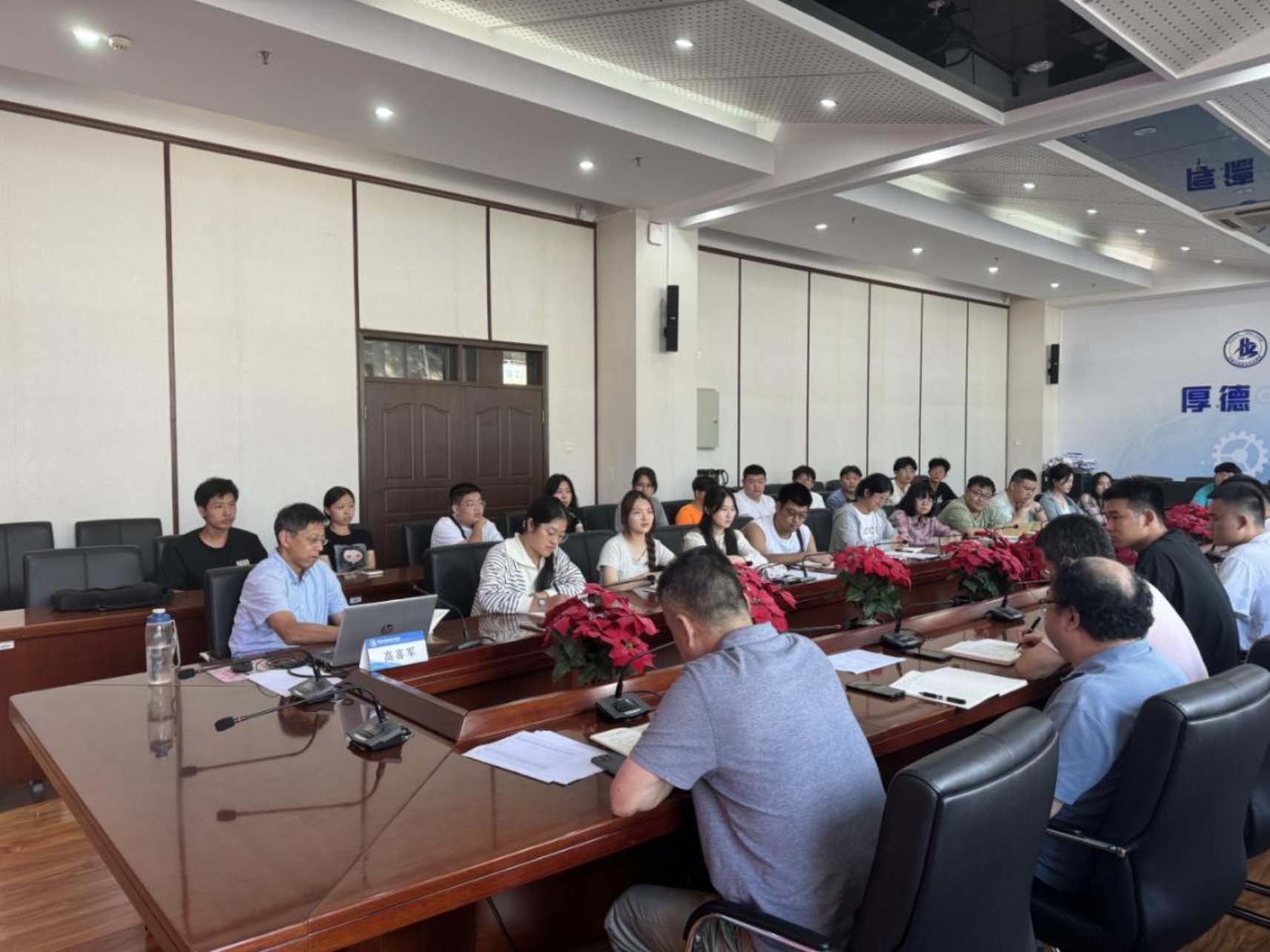 9月6日,黨委書記高喜軍在匠心樓第四會議室為2024級新生講授第一堂思政課。學工處處長梁文學、馬克思主義學院院長張春勇、副院長王軍紅和新生代表丁相文等40名同學聆聽了高書記的授課。