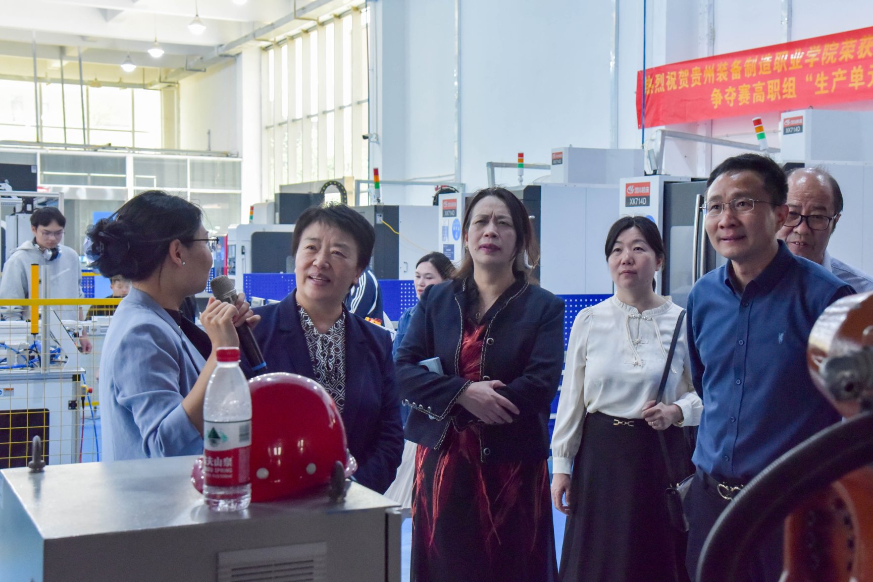 當日下午,在貴州裝備制造職業學院,學院黨委書記熊星,黨委委員、紀委書記劉萬千,黨委委員、副院長孫寧崗,黨委委員、宣傳統戰部部長蔣永彪及相關職能部門負責人與調研組座談交流,介紹了學校黨建工作的特色做法、“忠誠工匠” 育人模式、全省教育系統 “大思政課” 建設經驗與成效,以及機械工程、汽車工程、電氣工程等專業群的建設情況。調研組一行實地參觀了貴州省教育系統理想信念教育基地、機械加工實訓基地、數字加工理實一體化實訓基地、吉利產業學院、忠誠工匠文化研究院等實驗實訓基地和教育場館。