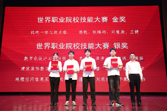 黨委副書記、院長柳長安為“2024年世界職業院校技能大賽獲獎團隊”“中國國際大學生創新大賽(2024)”獲獎團隊頒獎