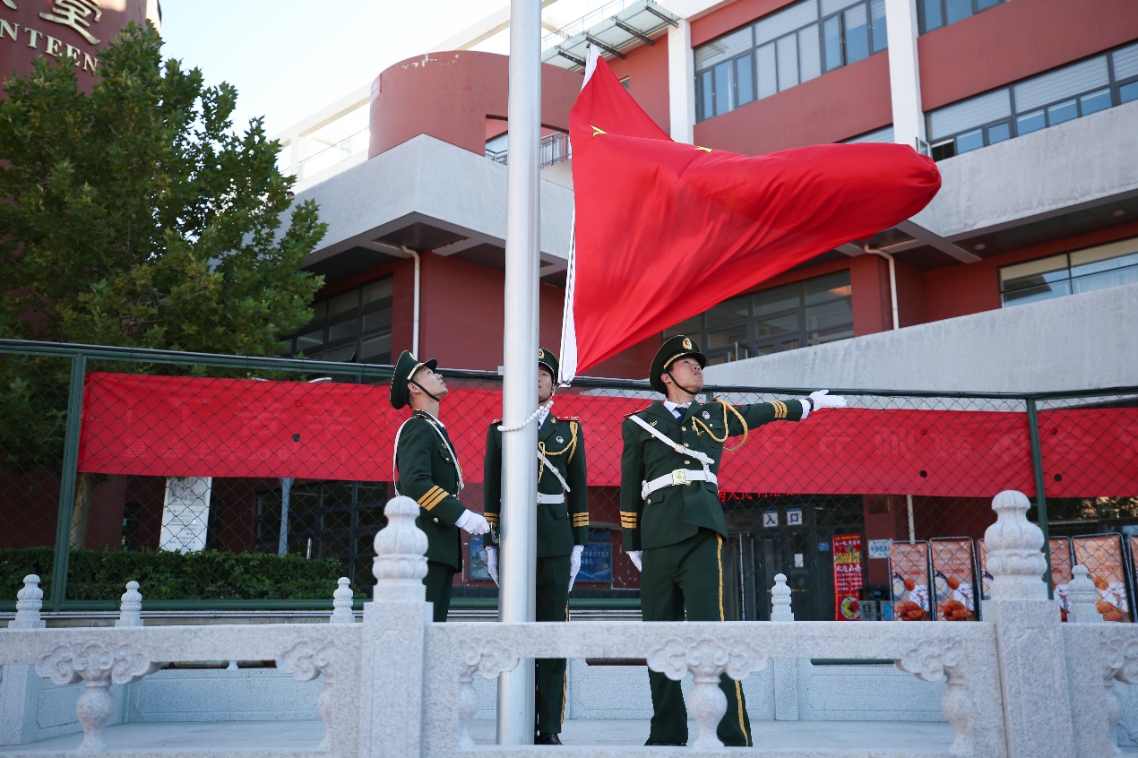 在雄壯的國歌聲中,全場肅立,五星紅旗徐徐升起,在藍天白云中迎風飄揚。師生在國旗下矗立,在國歌中昂首,共同迎接新學期的精彩起航。
