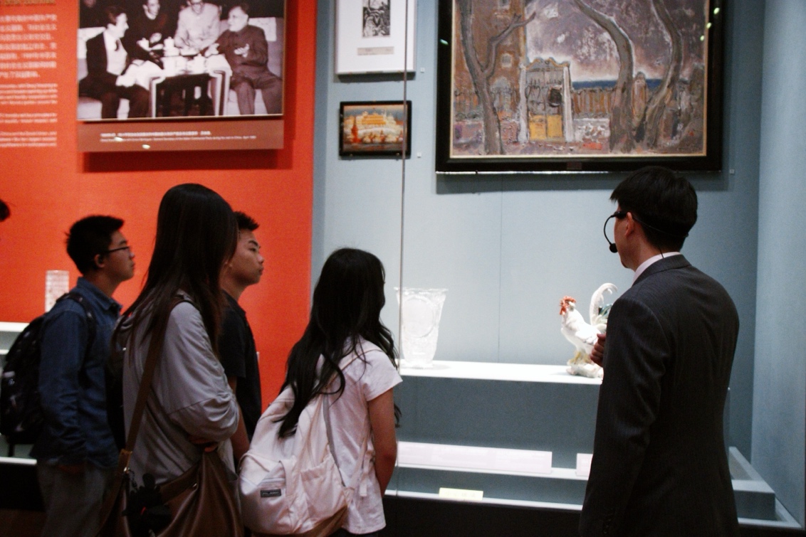 同學們在工作人員繪聲繪色的講解下,仔細觀看一件件獨具特色的外交禮品、一份份珍貴的文字材料,真切領略到 “一國一物一風情”。大家被富有特色的禮品文物深深吸引,每一份珍貴文件資料都引發大家駐足思考,沉浸于新中國外交歷程的探索中