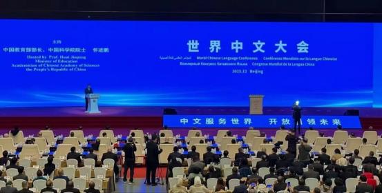 中國教育部部長、中國科學院院士懷進鵬主持世界中文大會全體大會