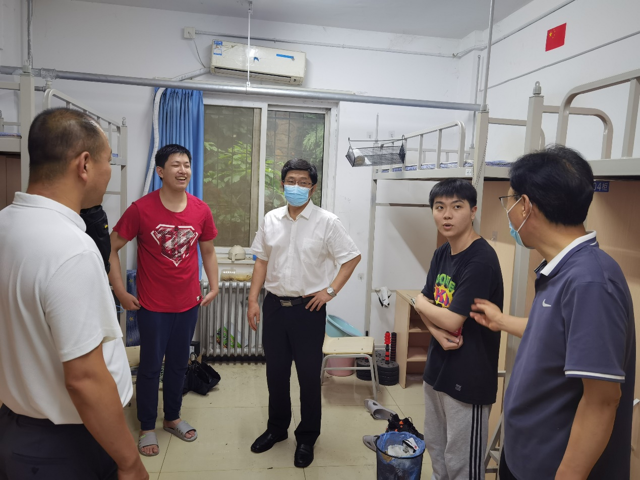 高喜軍書記、安江英院長、魏曉東副書記分別到學(xué)生寢室,看望行李打包的學(xué)生和班主任。詢問了畢業(yè)生就業(yè)情況,親切慰問了幫助學(xué)生收拾、托運(yùn)行李的班主任。