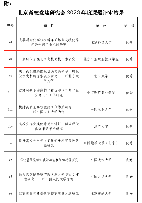 5月23日上午,在北京會(huì)議中心召開(kāi)北京高校黨建研究會(huì)第十一次會(huì)員大會(huì),會(huì)上北京科技大學(xué)黨委書(shū)記武貴龍宣讀了《關(guān)于表彰第十屆北京高校黨建研究會(huì)優(yōu)秀課題成果、工作先進(jìn)單位的決定》。由我校黨委書(shū)記高喜軍主持的2023年度北京高校黨建研究會(huì)重大課題——“新時(shí)代加強(qiáng)北京高校黨校工作研究”榮獲優(yōu)秀課題成果。