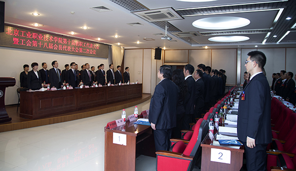 4月18日上午,我校第十屆教職工代表大會(huì)暨工會(huì)第十八屆會(huì)員代表大會(huì)第二次會(huì)議(以下簡稱“雙代會(huì)”)在綜合樓三層報(bào)告廳隆重開幕。黨委書記王偉、校長陳建民、黨委副書記兼工會(huì)主席任保奎、副校長劉蘭明、副校長王希忠、副校長馮海明、校長助理謝光輝等領(lǐng)導(dǎo)和主席團(tuán)成員在主席臺(tái)就坐。全體“雙代會(huì)”的正式代表、列席代表、特邀代表參加了會(huì)議。會(huì)議由工會(huì)常務(wù)副主席王艷紅主持。