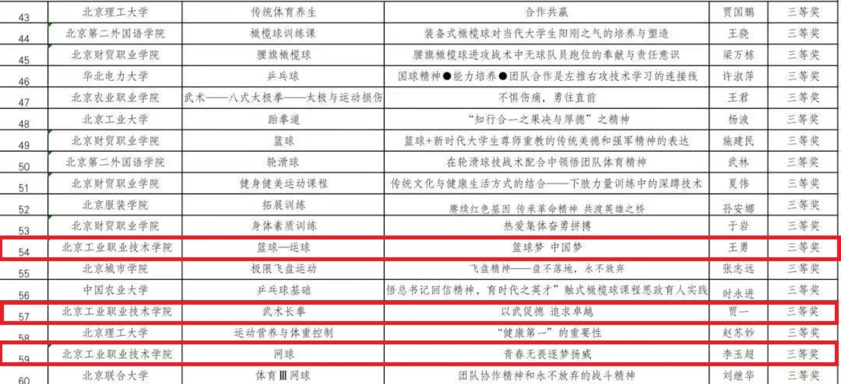 為深入貫徹落實習(xí)近平總書記關(guān)于教育、體育的重要論述和全面落實全國教育大會精神,根據(jù)中共中央、國務(wù)院《深化新時代教育改革評價總體方案》等文件的工作部署,深入落實三全育人工作,首都高校體育思政研究會于2023年6月開展體育課程思政教學(xué)案例的征集工作。我校體育部針對此項工作,成立5個體育項目團(tuán)隊進(jìn)行教學(xué)案例撰寫和課程錄制工作,提交申報了八段錦、動感單車、武術(shù)、籃球、網(wǎng)球等五個項目課程思政教學(xué)案例。經(jīng)首都高校體育思政研究會專家組的嚴(yán)格評審,我校體育部申報的五門課程教學(xué)案例全部獎項。