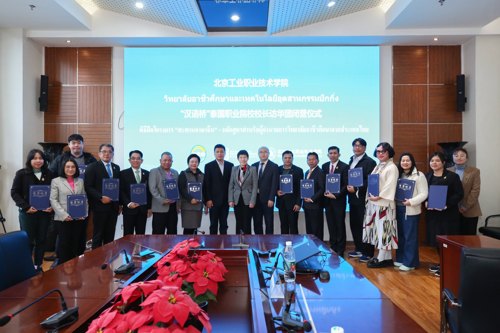 11月18日,“漢語橋”泰國職業院校校長訪華團在我校閉營。我校黨委常委、副院長周燕出席此次閉營儀式。儀式由文法與管理學院黨總支書記劉建新主持,國際交流合作處處長孟晴及文法與管理學院相關人員共同參會。