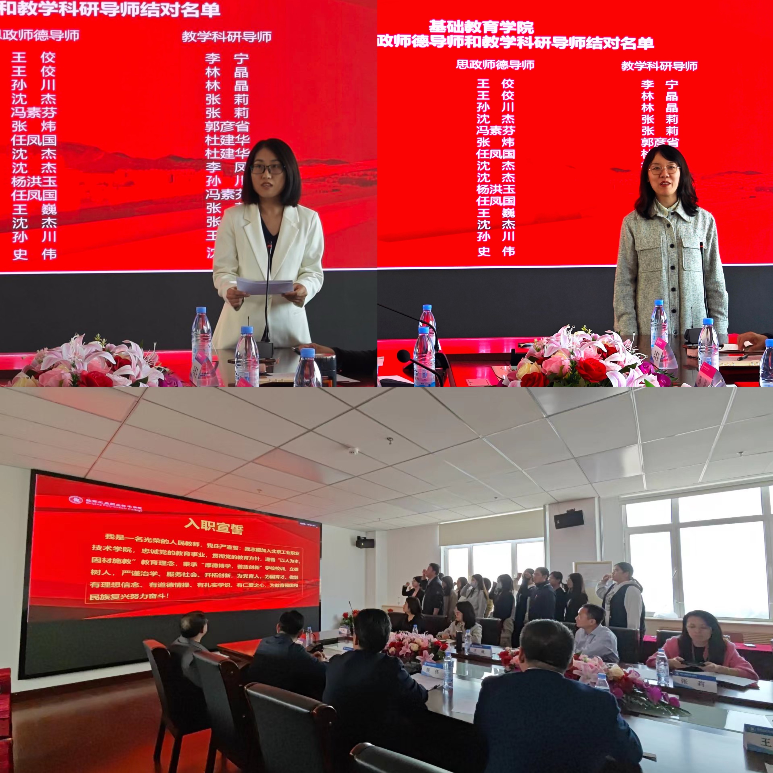 新入職教師代表高莉發(fā)言,導(dǎo)師代表孫川副院長發(fā)言。會上王巍書記帶領(lǐng)青年教師重溫了入職誓言。
