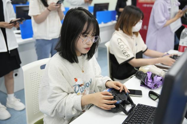 北語(yǔ)國(guó)際學(xué)生們聚精會(huì)神參與無(wú)人機(jī)模擬飛行實(shí)操訓(xùn)練