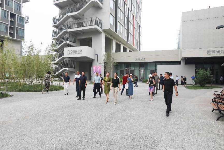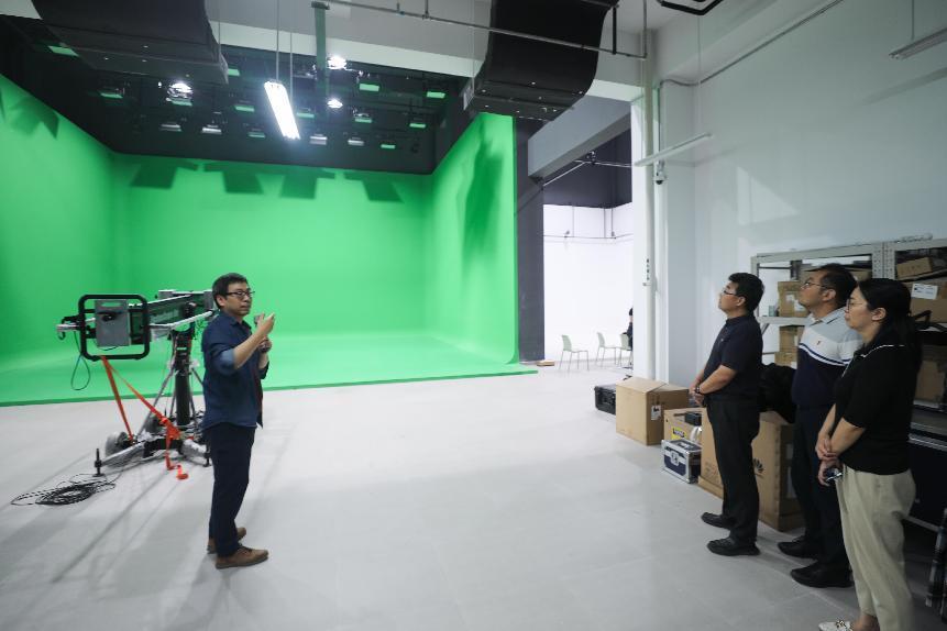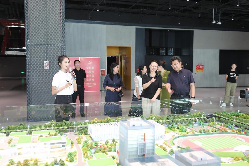 調研組首先來到北影校園總體規劃沙盤展廳,志愿者為大家介紹北京電影學院懷柔新校區的總體規劃、設計理念、分期建設等情況。隨后,調研組實地走訪了懷柔新校區的影廳、千人劇場、黑匣子劇場、動畫學院工作室、數字媒體學院攝影棚等場所。