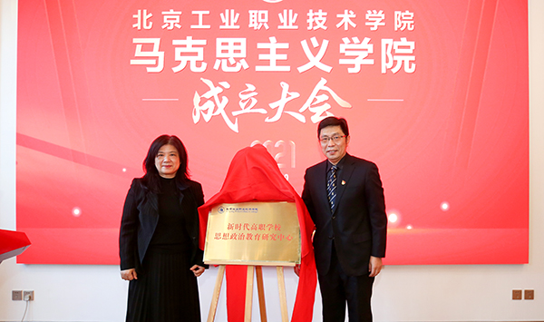 中國職業技術教育學會會長、教育部原副部長魯昕與校黨委書記王偉為我校馬克思主義學院揭牌