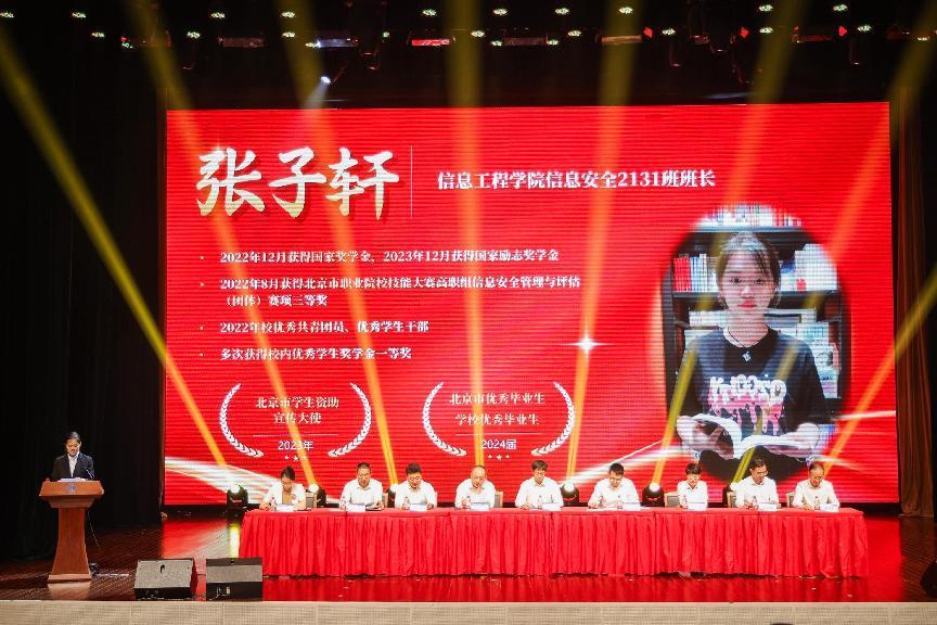 在熱烈的氛圍中,黨委常委、副院長史運濤宣讀《關于準予2024屆1398名學生畢業的決定》;黨委副書記魏曉東宣布布了《關于2024屆優秀畢業生的表彰決定》,70人被評為北京市優秀畢業生,140人被評為學校優秀畢業生。