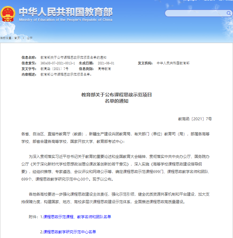 近日,教育部公布了課程思政示范項目名單,我校《無人機傾斜攝影測量》《公共英語》和《公共體育》三門課程被確定課程思政示范課程。