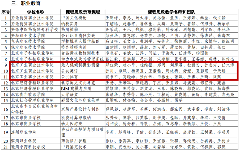 北京工業職業技術學院入選課程思政示范課程、教學名師和團隊名單 |